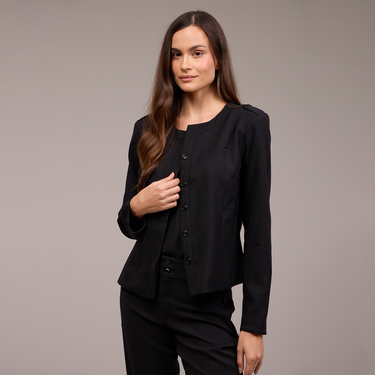 O Blazer Feminino Alongado Viviane é uma opção elegante e moderna para ser usada no ambiente de trabalho. Com um comprimento alongado, este blazer oferece uma silhueta sofisticada e refinada. O acabamento arredondado adiciona um toque de suavidade à peça, tornando-a mais feminina.