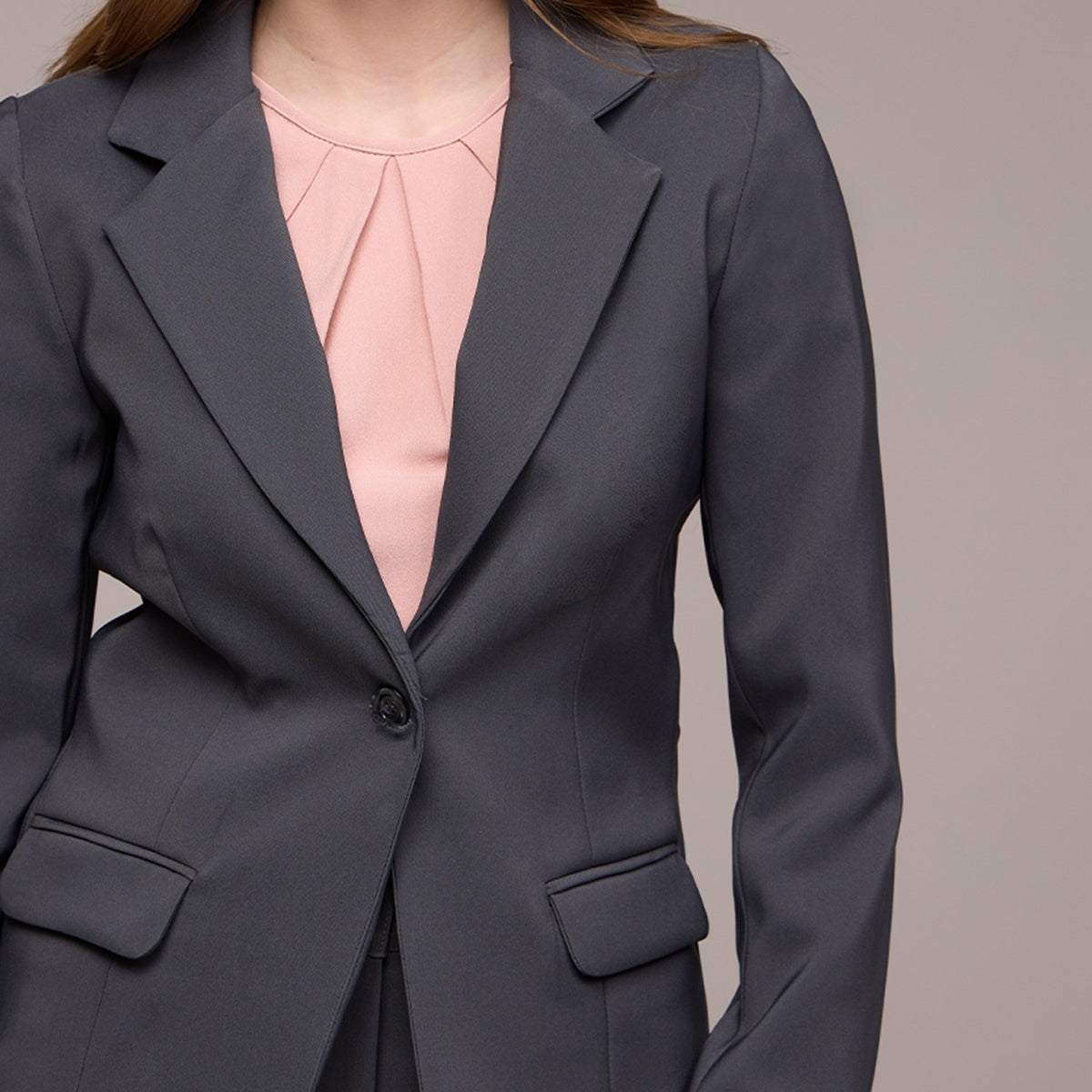 Este blazer possui dois bolsos embutidos na base que oferecem espaço para armazenar pequenos objetos e possuem tampas, que ajudam a manter os objetos seguros e protegidos.