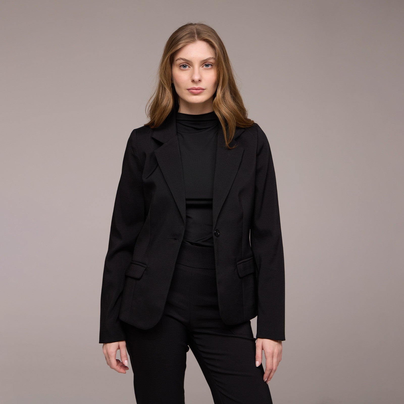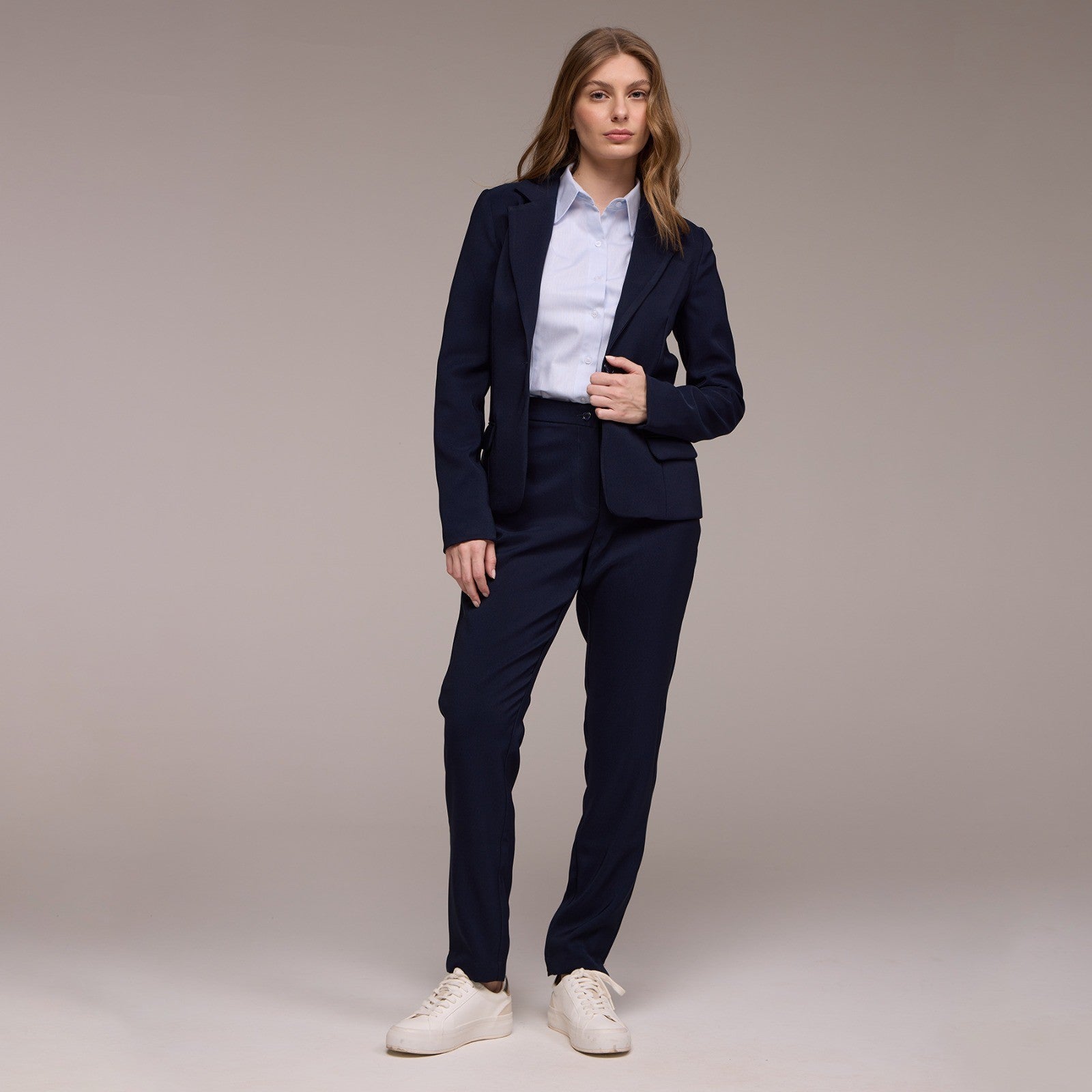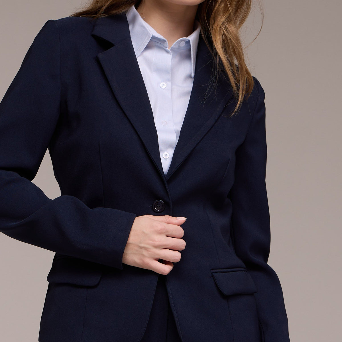 O Blazer Feminino Um Botão Mirela é uma peça clássica e elegante, projetada para adicionar sofisticação a qualquer look. Ele apresenta um fechamento de um botão na parte da frente, permitindo um ajuste seguro e uma silhueta elegante.