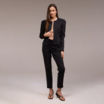 Versátil, o blazer pode ser combinado com diferentes peças de roupa, desde uma calça social até uma saia lápis.