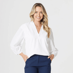 A Blusa Feminina Manga 3/4 Bufante Micaela VSB é uma peça de uniforme para quem busca um visual mais fresco, leve e despojado. A blusa possui mangas ¾, que vão até o antebraço e apresentam um leve volume ou franzido na parte superior, criando um efeito bufante.