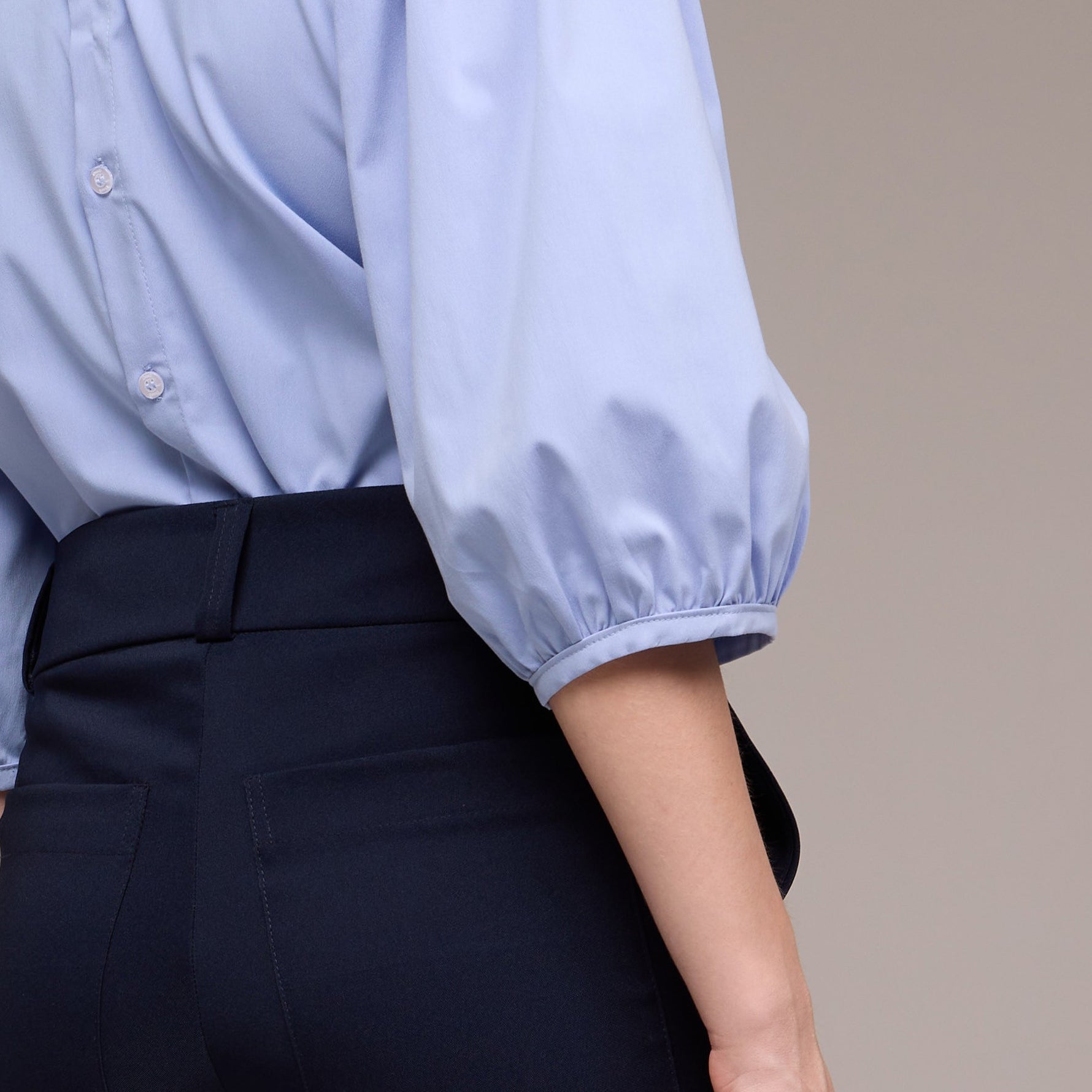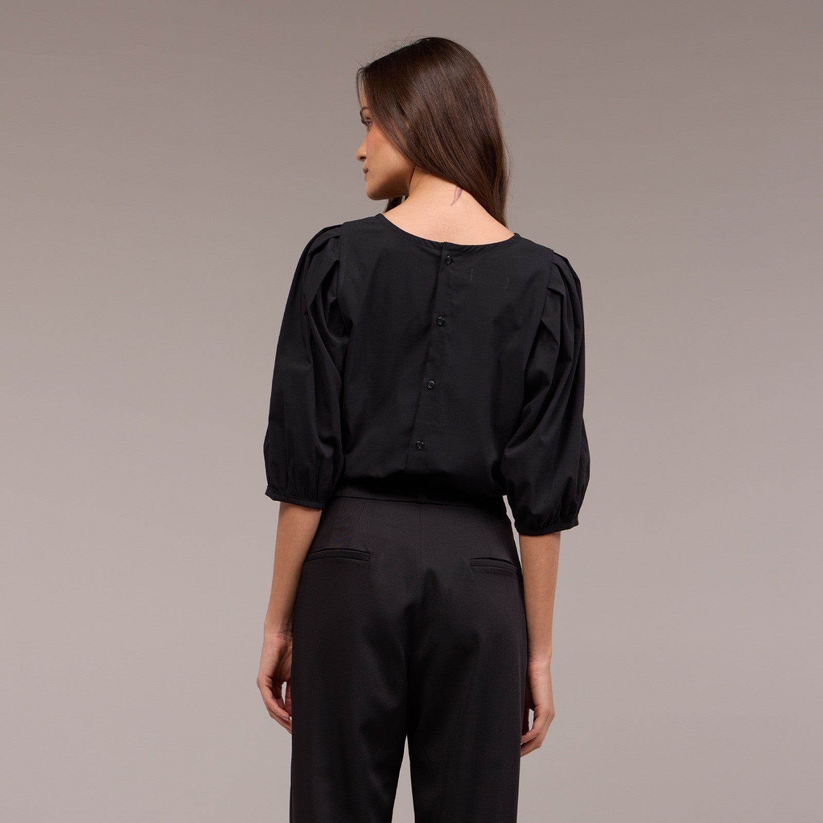 Abotoamento nas Costas - Garante um ajuste confortável da peça ao corpo e facilitando o processo de vestir e despir a blusa.