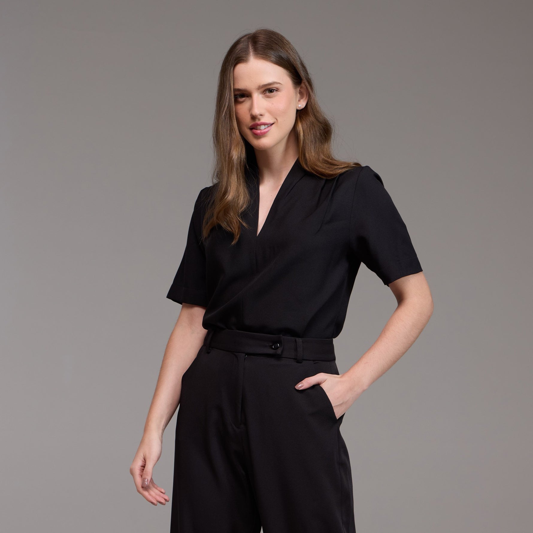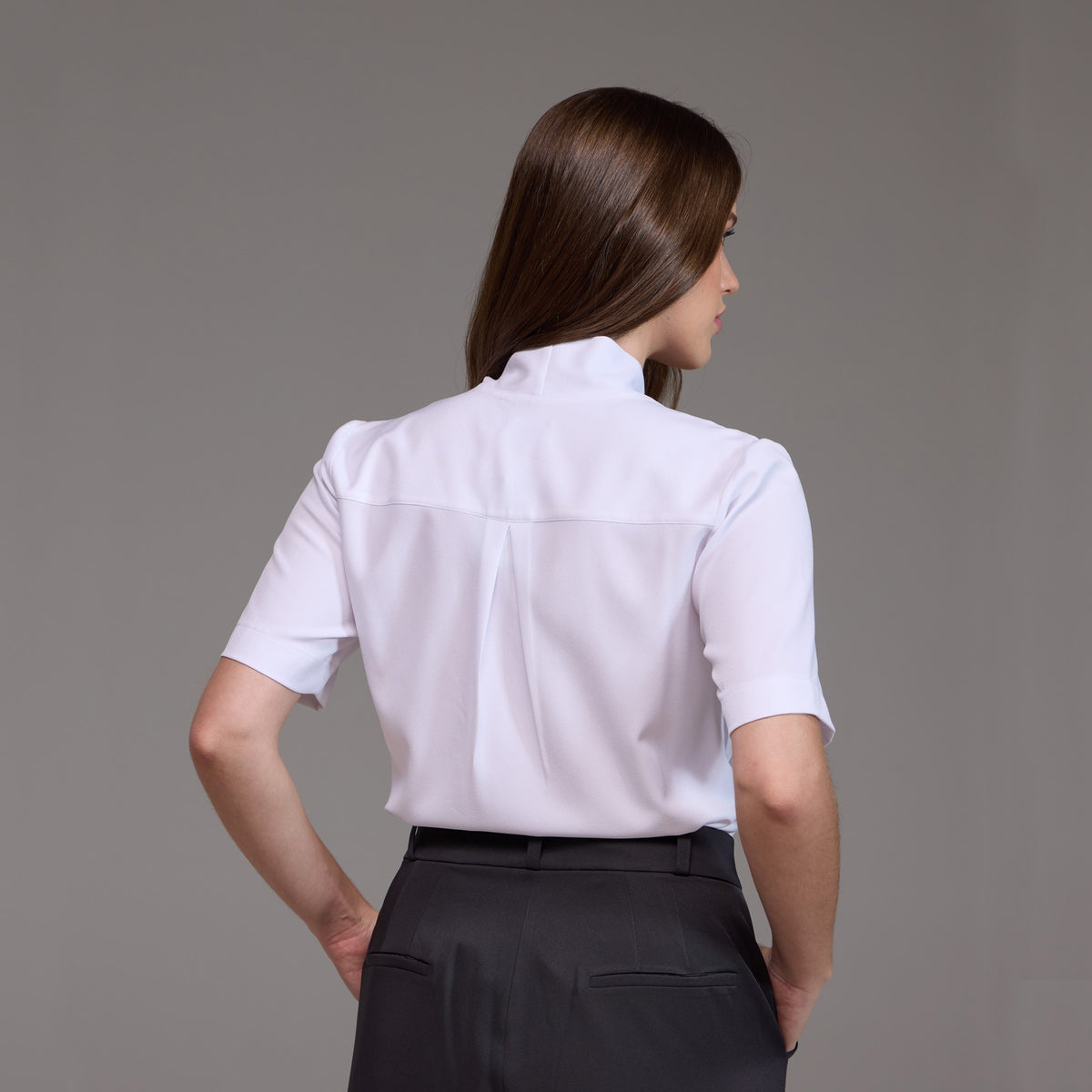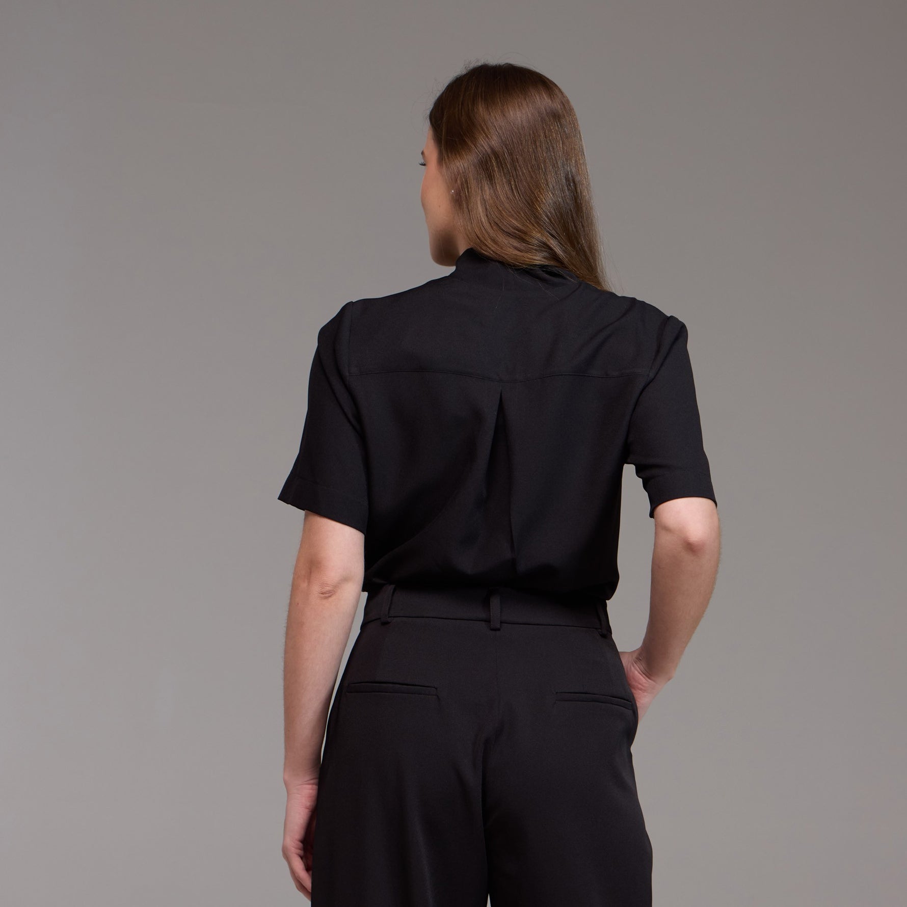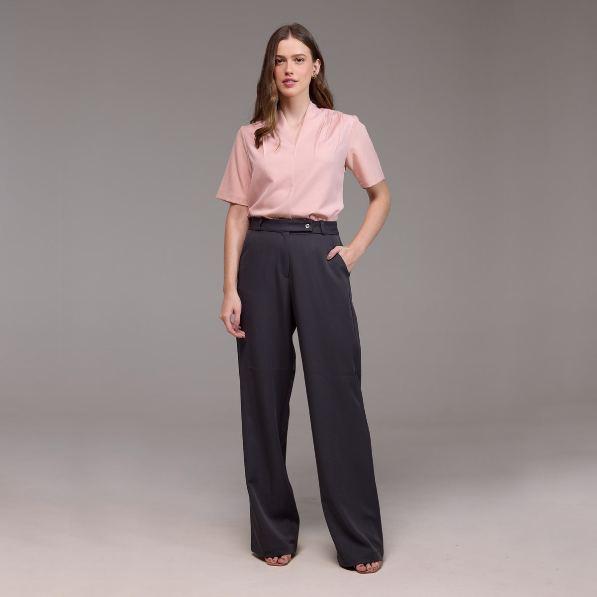 A Blusa Feminina Manga Curta Agata é uma peça moderna e com detalhes únicos, projetada para proporcionar conforto e estilo no ambiente de trabalho.