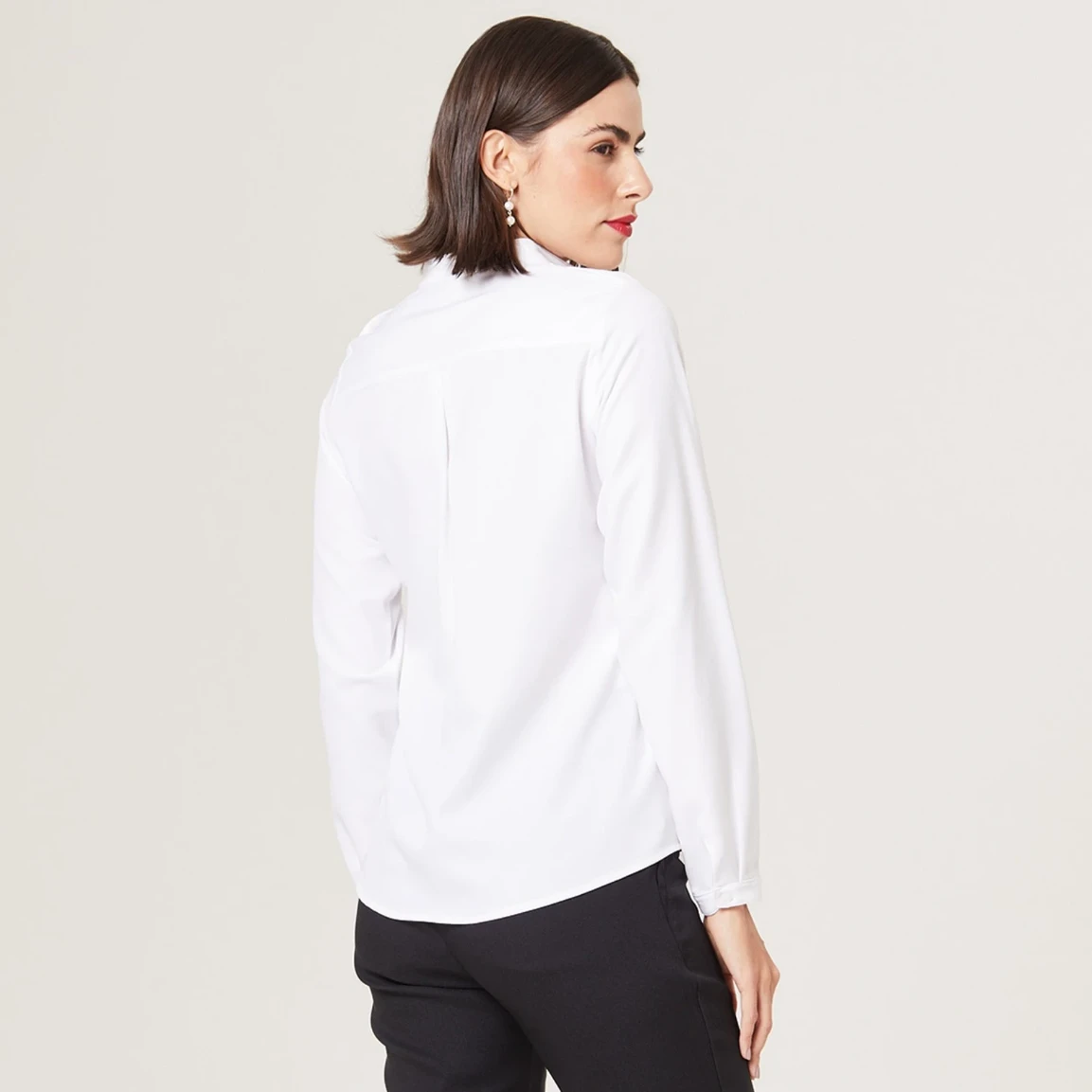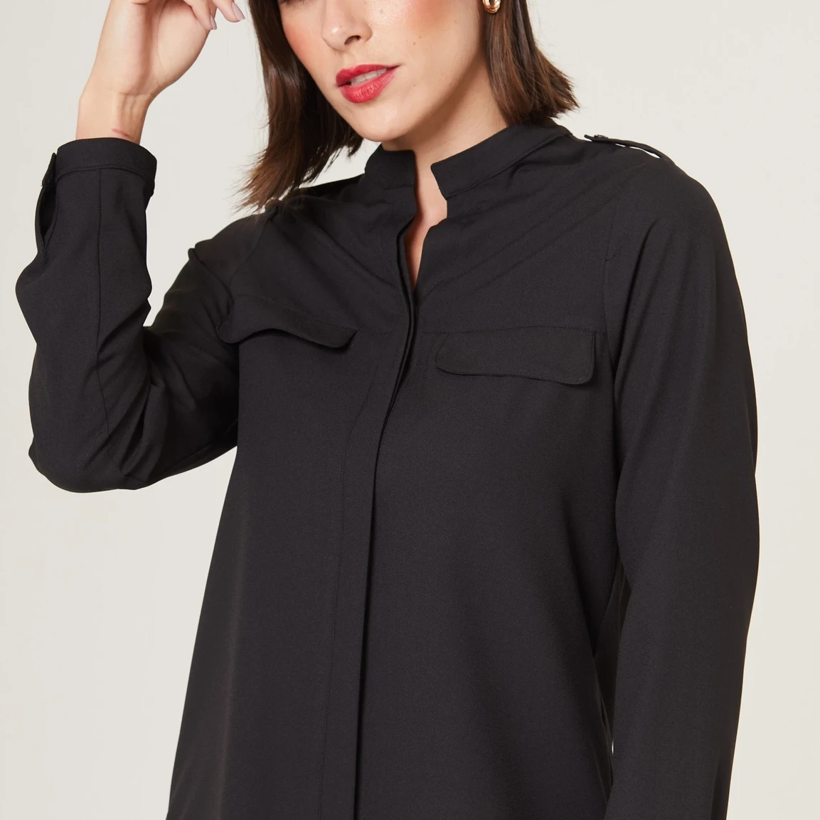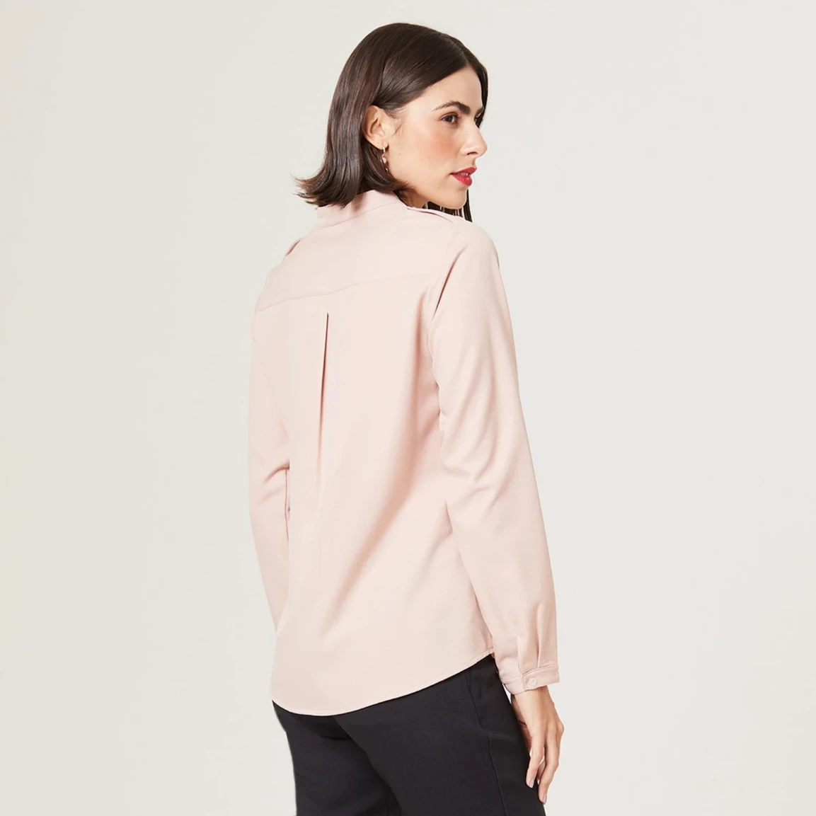 Seu abotoamento frontal embutido proporciona um acabamento mais limpo e discreto, além de permitir com que você ajuste a abertura conforme sua preferência, adicionando diferentes estilos à blusa .
