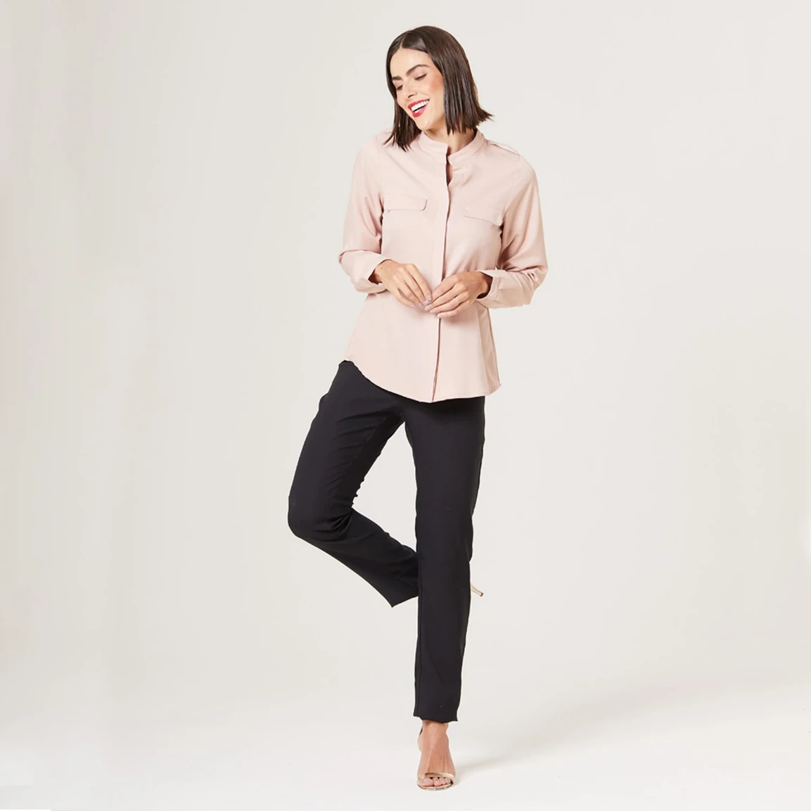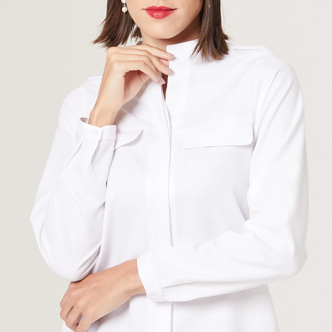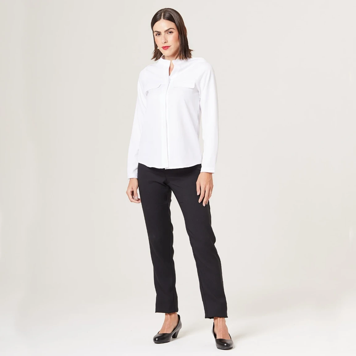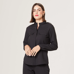 Seu abotoamento frontal embutido proporciona um acabamento mais limpo e discreto, além de permitir com que você ajuste a abertura conforme sua preferência, adicionando diferentes estilos à blusa .