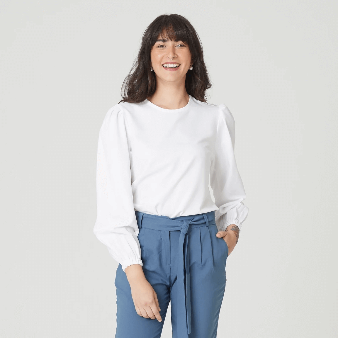 A Blusa Feminina Manga Longa Hilda é uma peça clássica e confortável para o dia a dia de trabalho. A blusa apresenta decote redondo, o que confere um toque de feminilidadeao design da peça,realçando a área do pescoço e do colode maneira sutil.