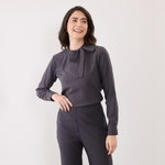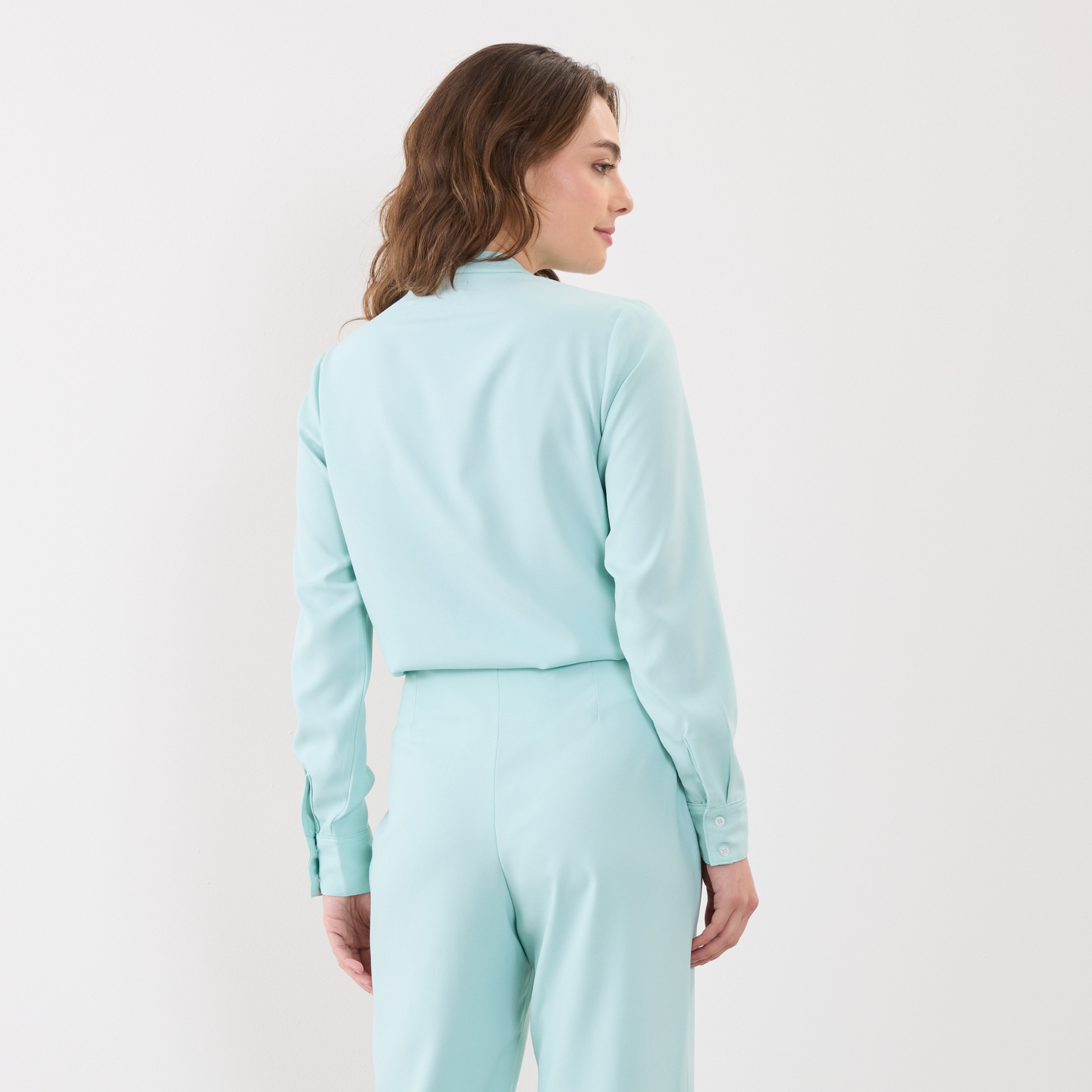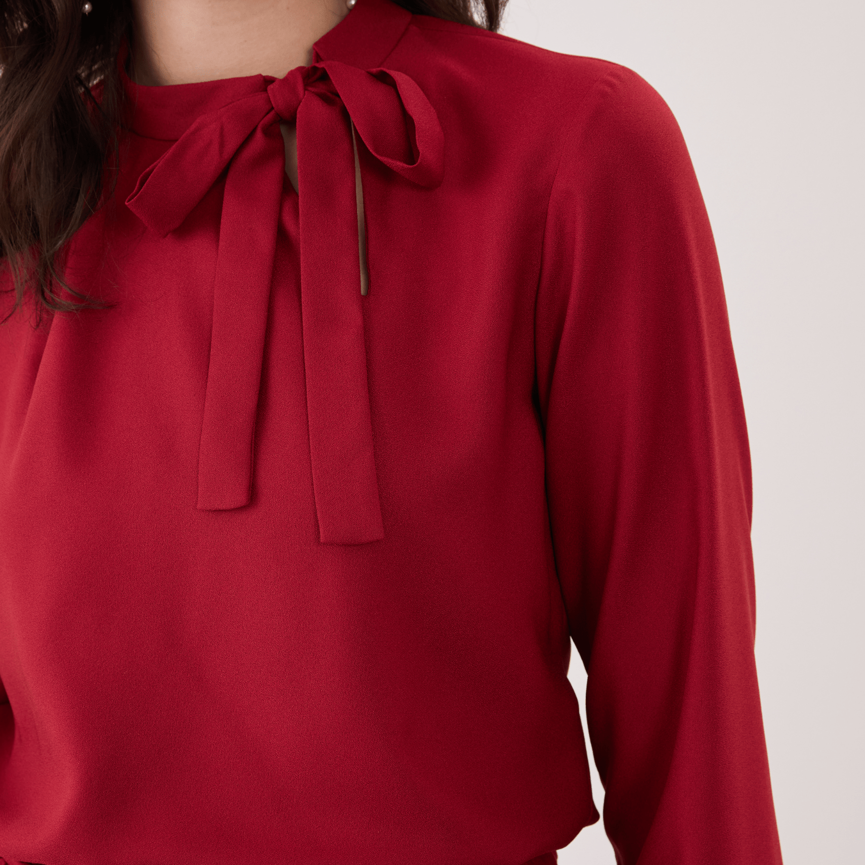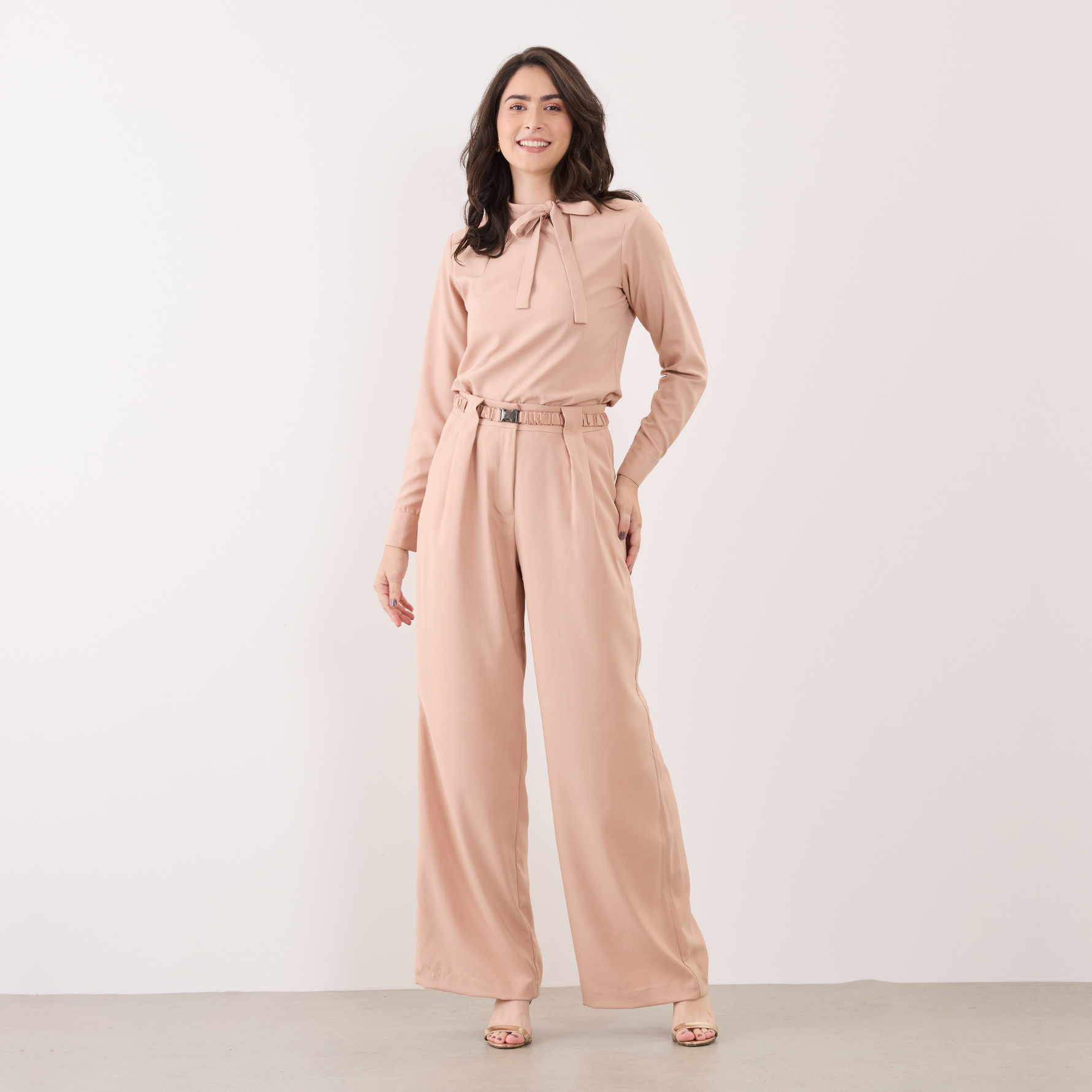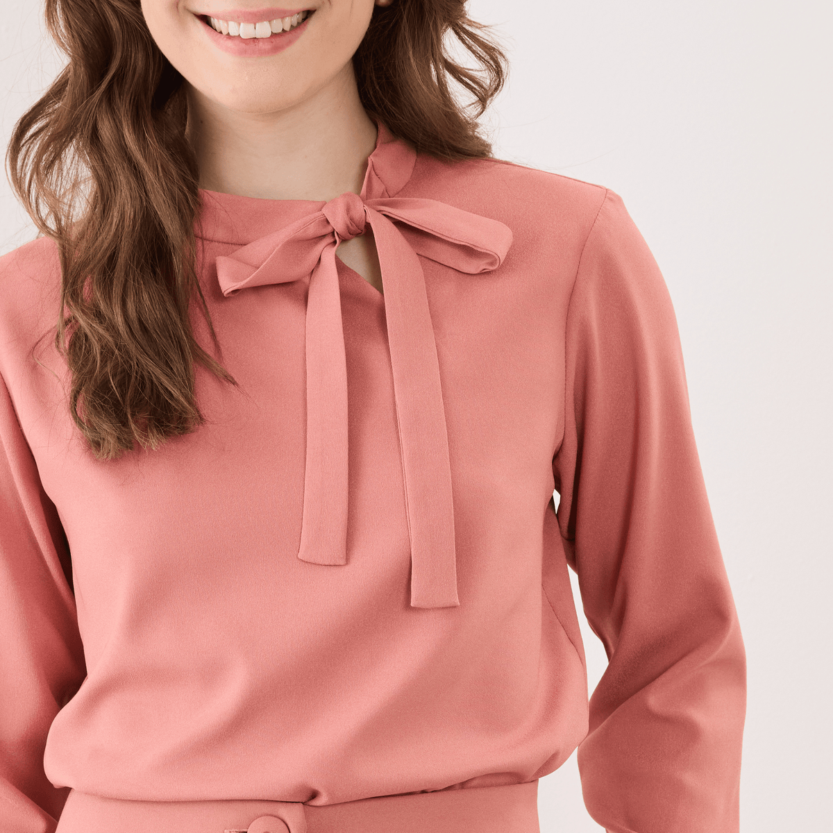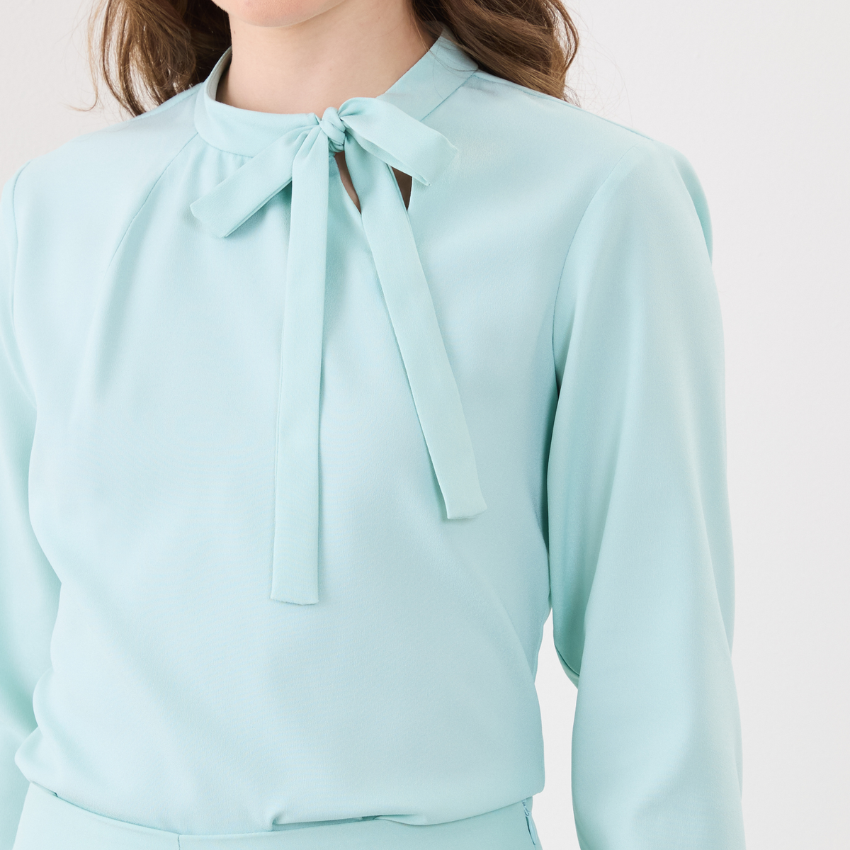 Além disso, a Blusa Feminina Manga Longa Lia possui uma amarração em laço na gola, o que adiciona um toque feminino e delicado ao visual.