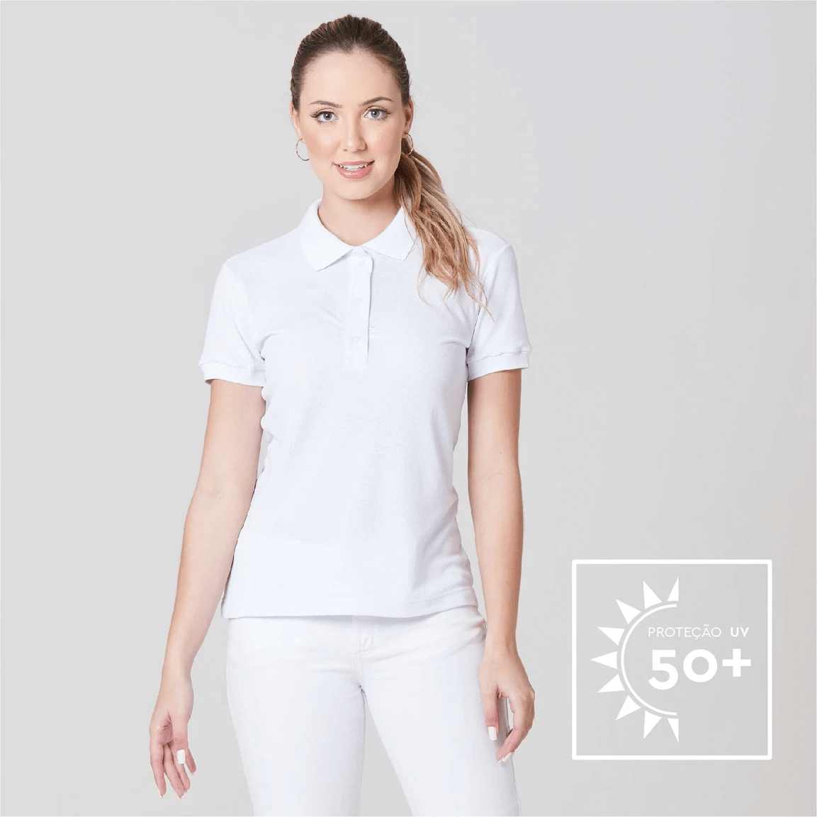 Blusa Polo Feminina Três Botões Milena PQ - Pronta Entrega