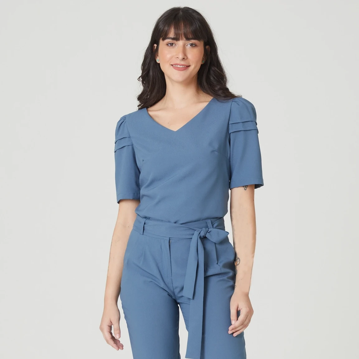 A Blusa Feminina Manga Longa Jackie é uma clássica camisa de botão, elegante e versátil para ser usada em composições mais formais. A camisa possui um abotoamento frontal simples, isso permite fácil colocação e remoção da peça, além de dar um aspecto limpo e organizado.