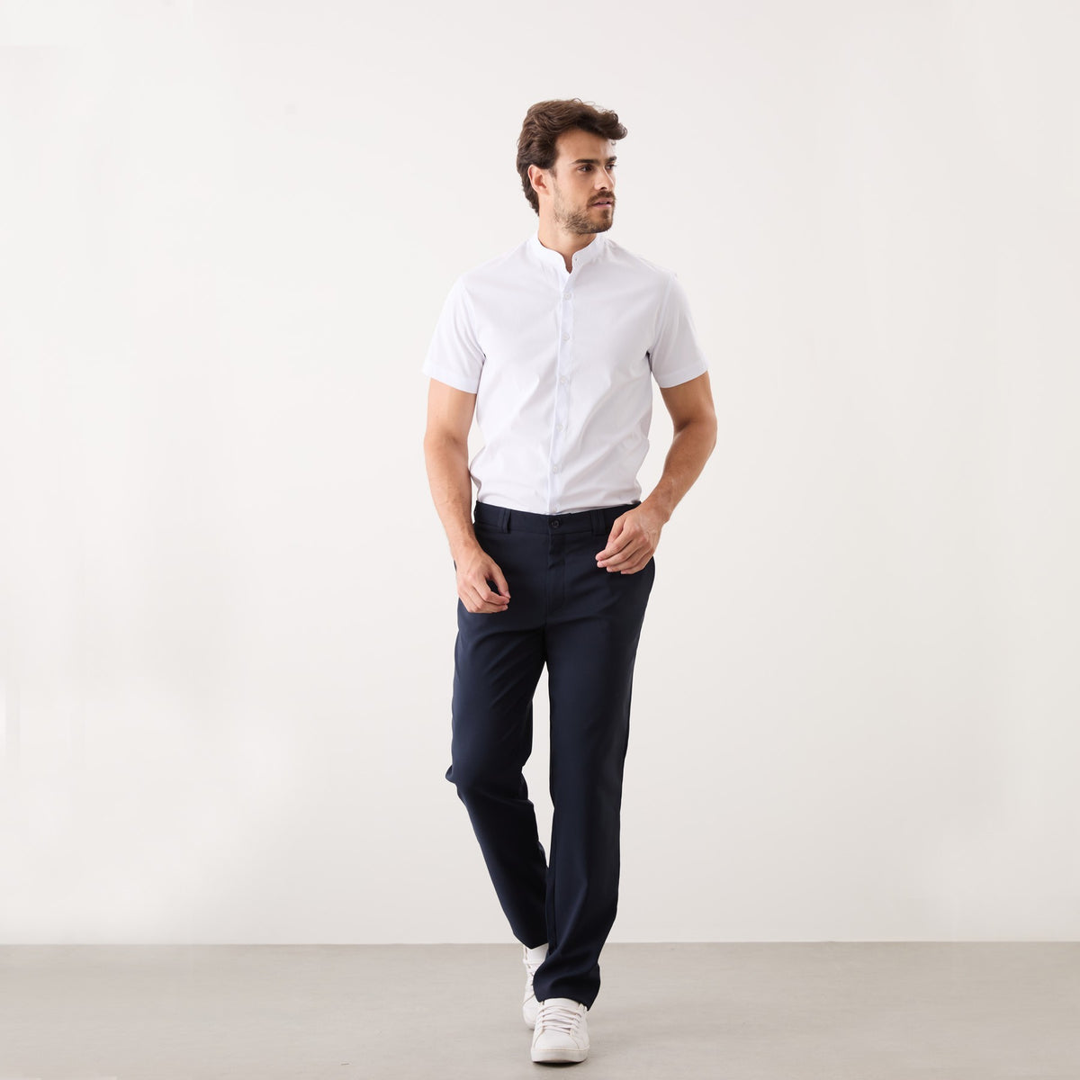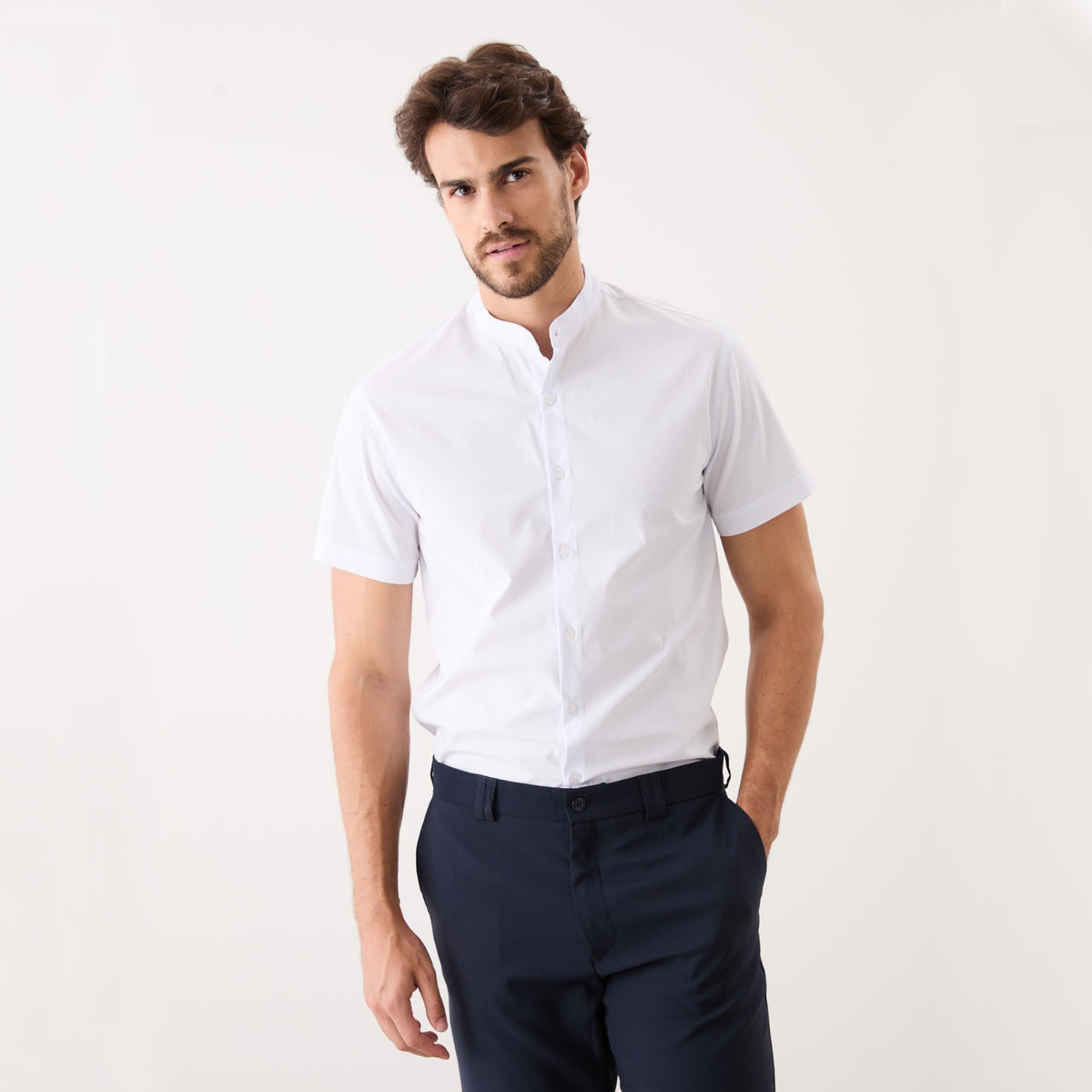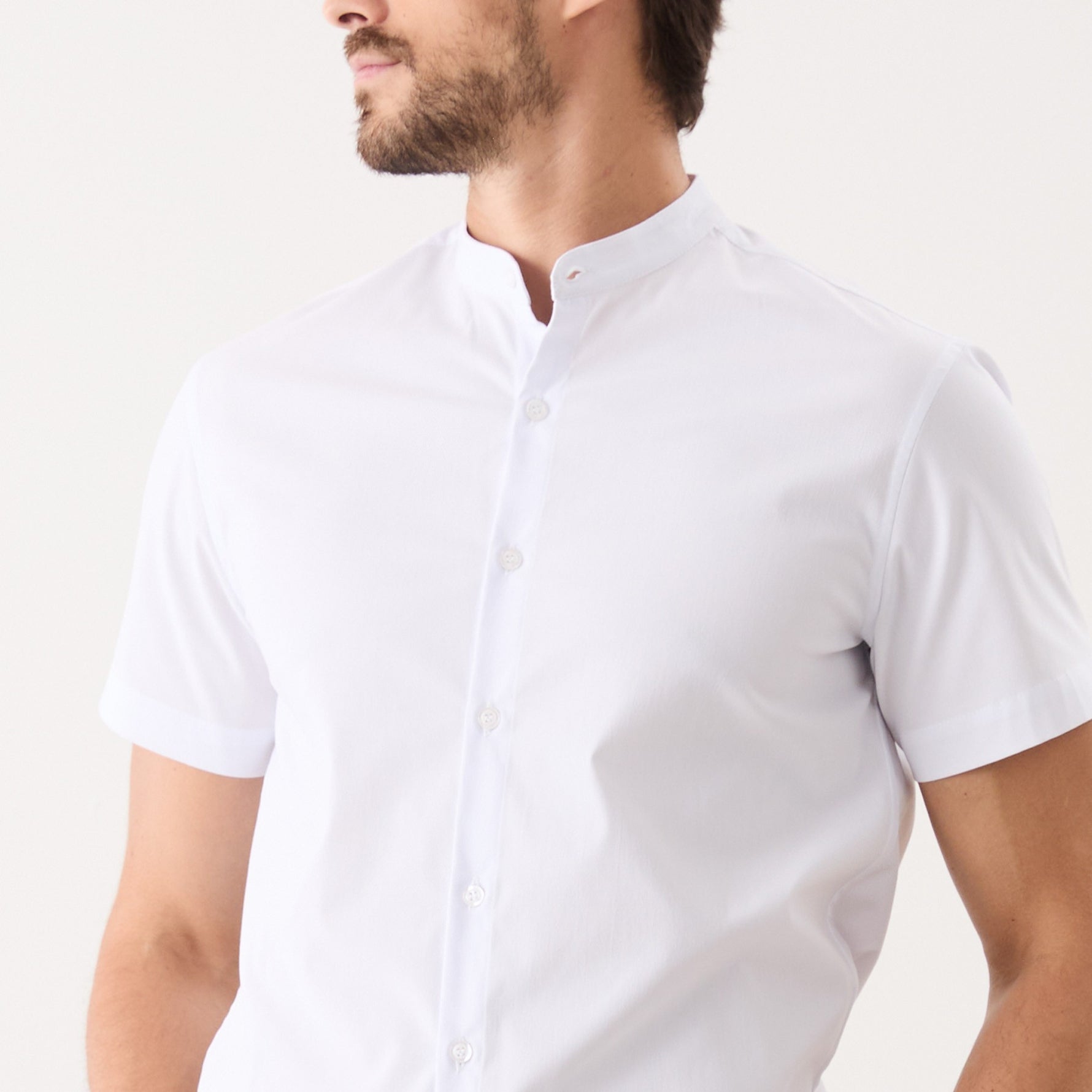 O destaque desta camisa é a sua gola padre, que confere um toque sofisticado e contemporâneo ao visual. A camisa possui uma patte com 4 botões, permite que você ajuste a abertura até a altura do tórax de acordo com sua preferência, proporcionando praticidade ao vestir a camisa e uma maior ventilação em dias mais quentes.