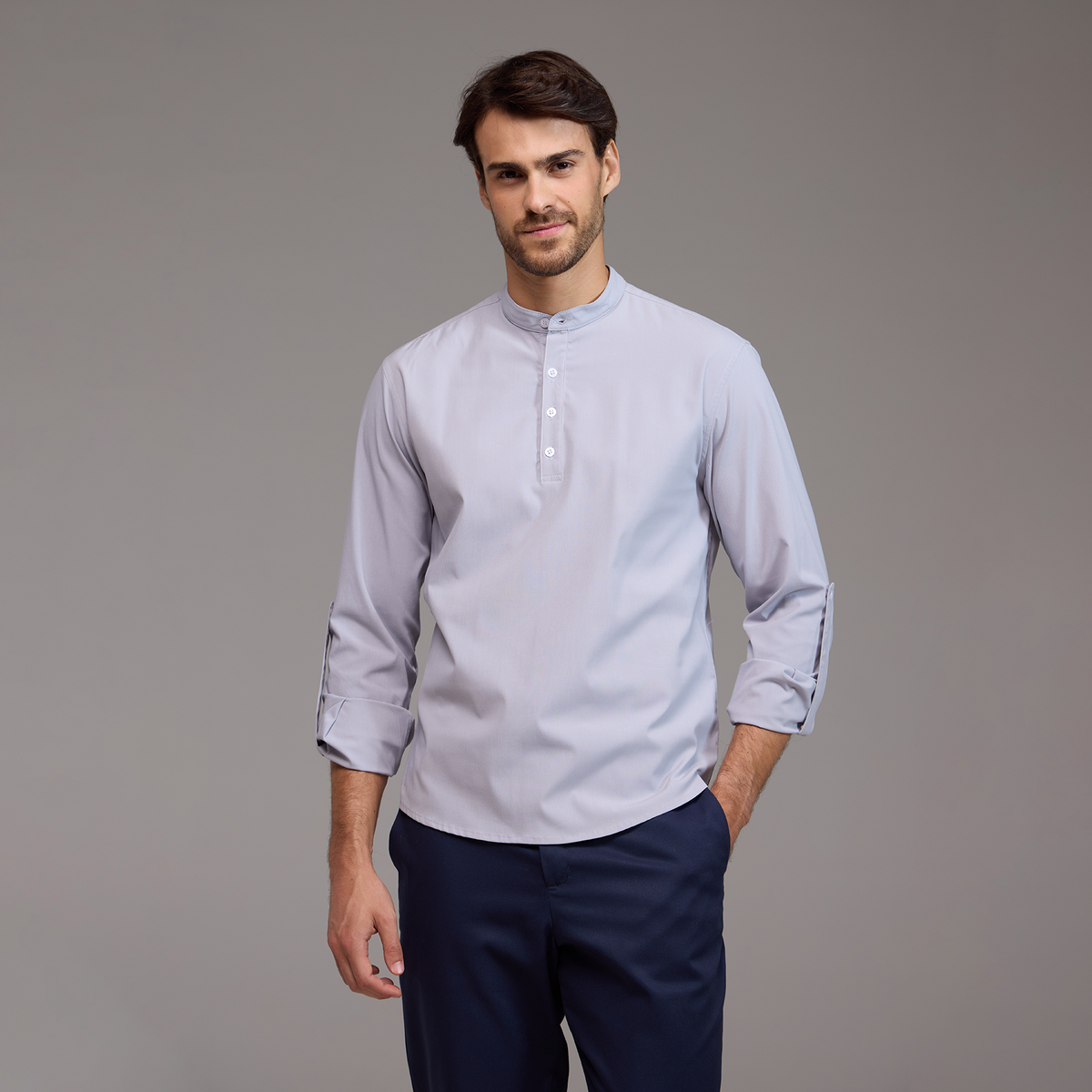 A Camisa Masculina Manga Longa Chico é uma opção elegante e moderna, projetada especialmente para profissionais que trabalham em cargos de recepção em hotéis com estilo praia. Feita com tecido de alta qualidade, a camisa oferece conforto e durabilidade ao longo do dia.