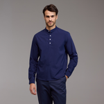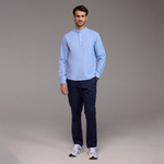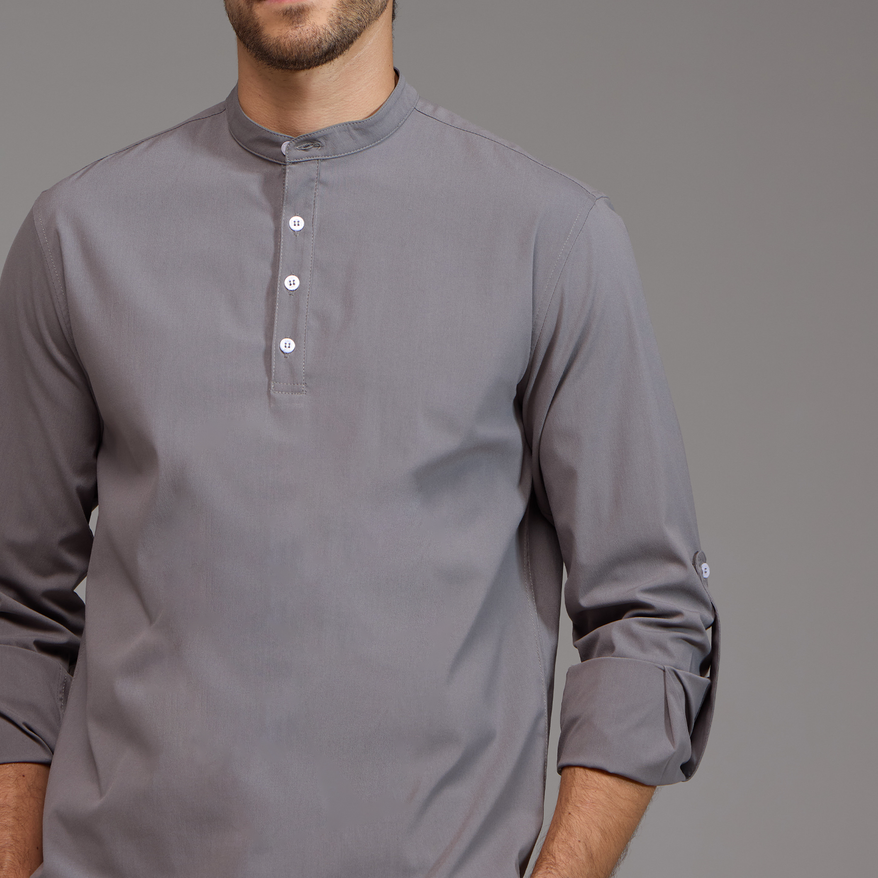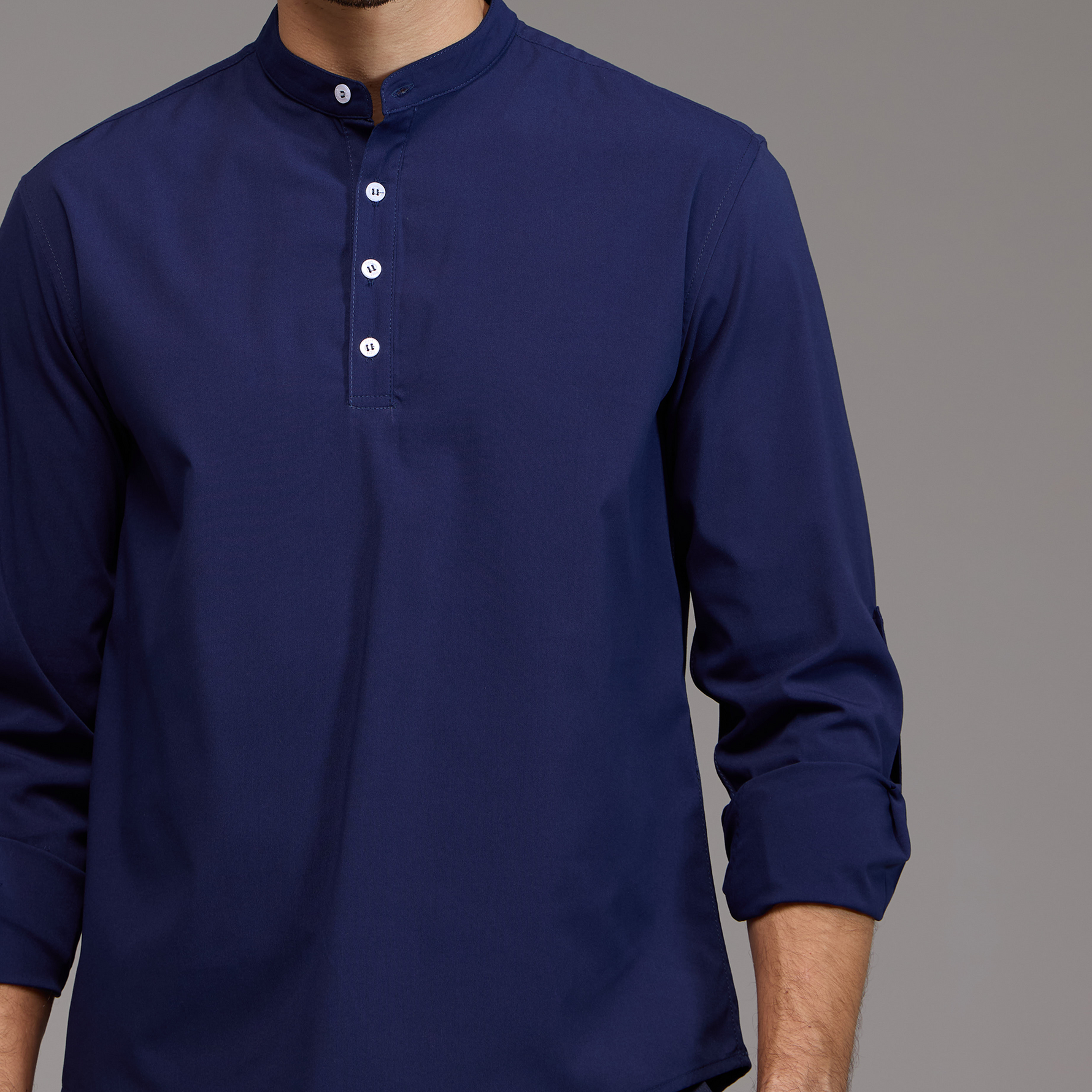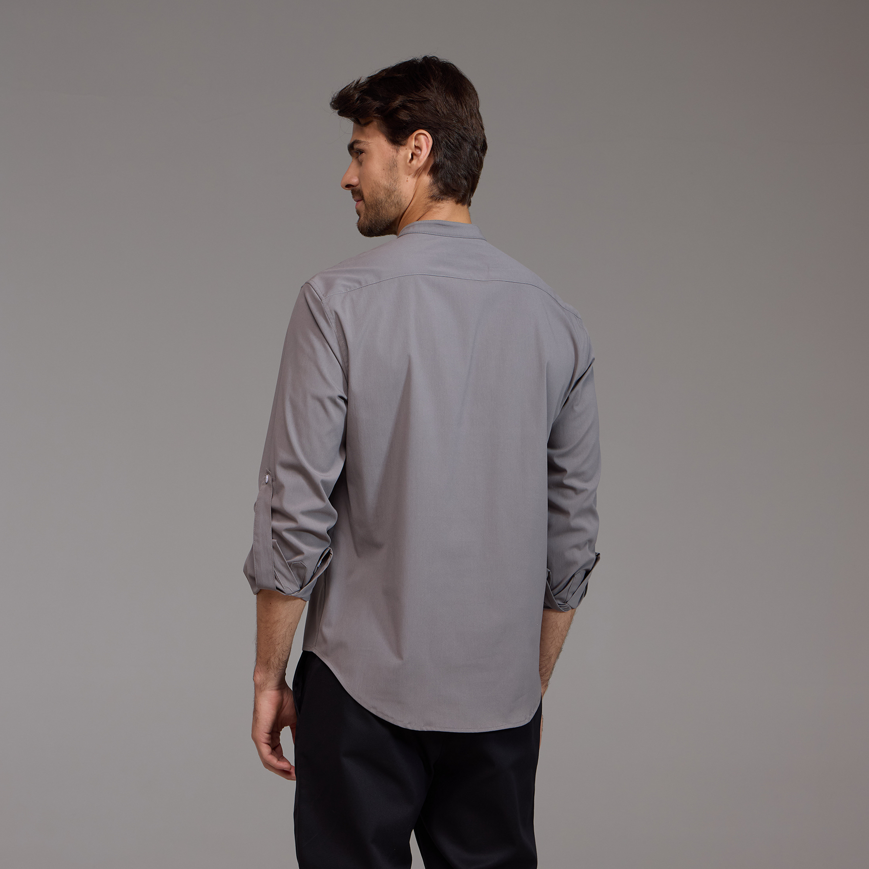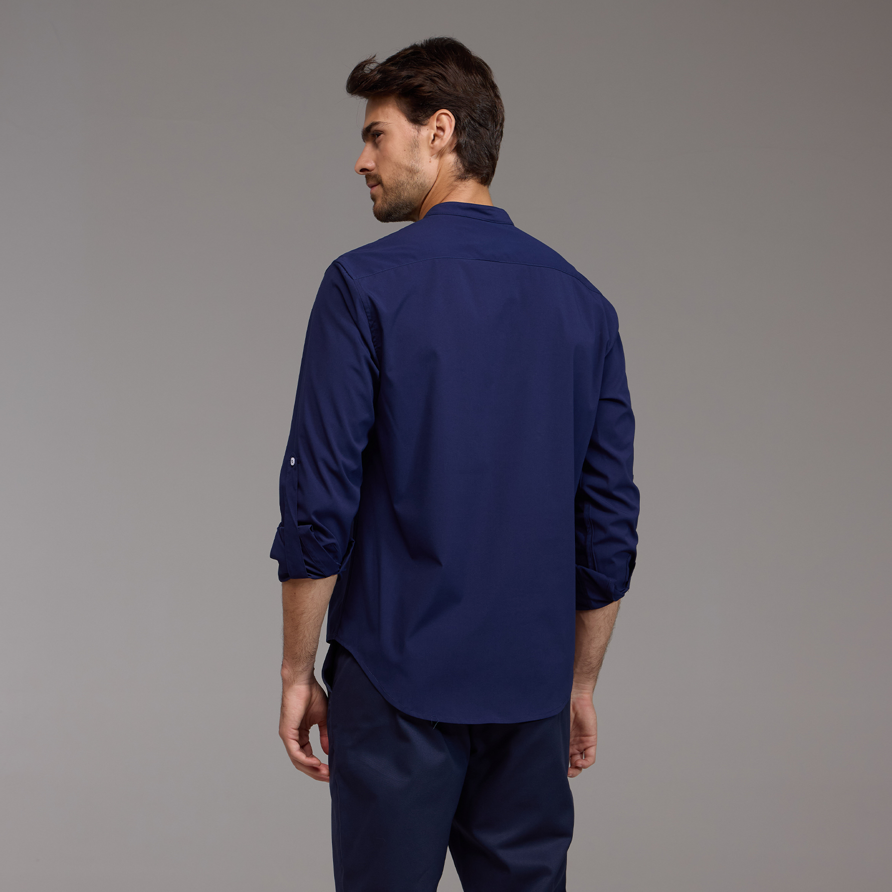 O destaque desta camisa é a sua gola padre, que confere um toque sofisticado e contemporâneo ao visual. A camisa possui uma patte com 4 botões, permite que você ajuste a abertura até a altura do tórax de acordo com sua preferência, proporcionando praticidade ao vestir a camisa e uma maior ventilação em dias mais quentes.