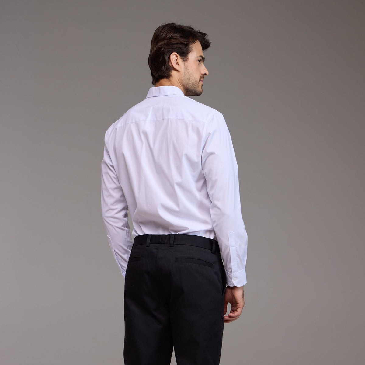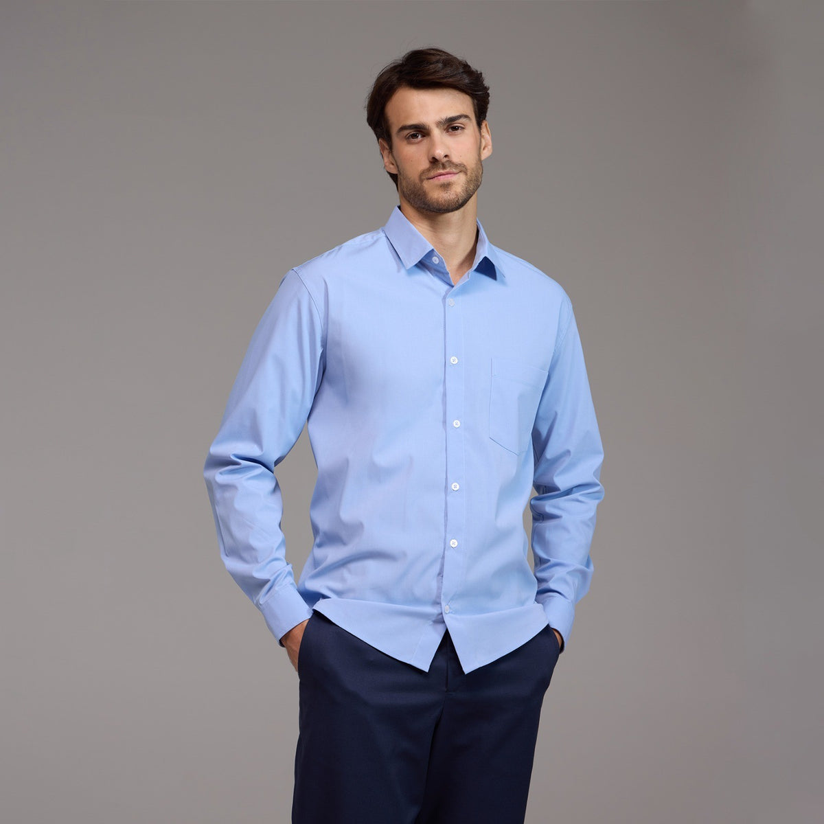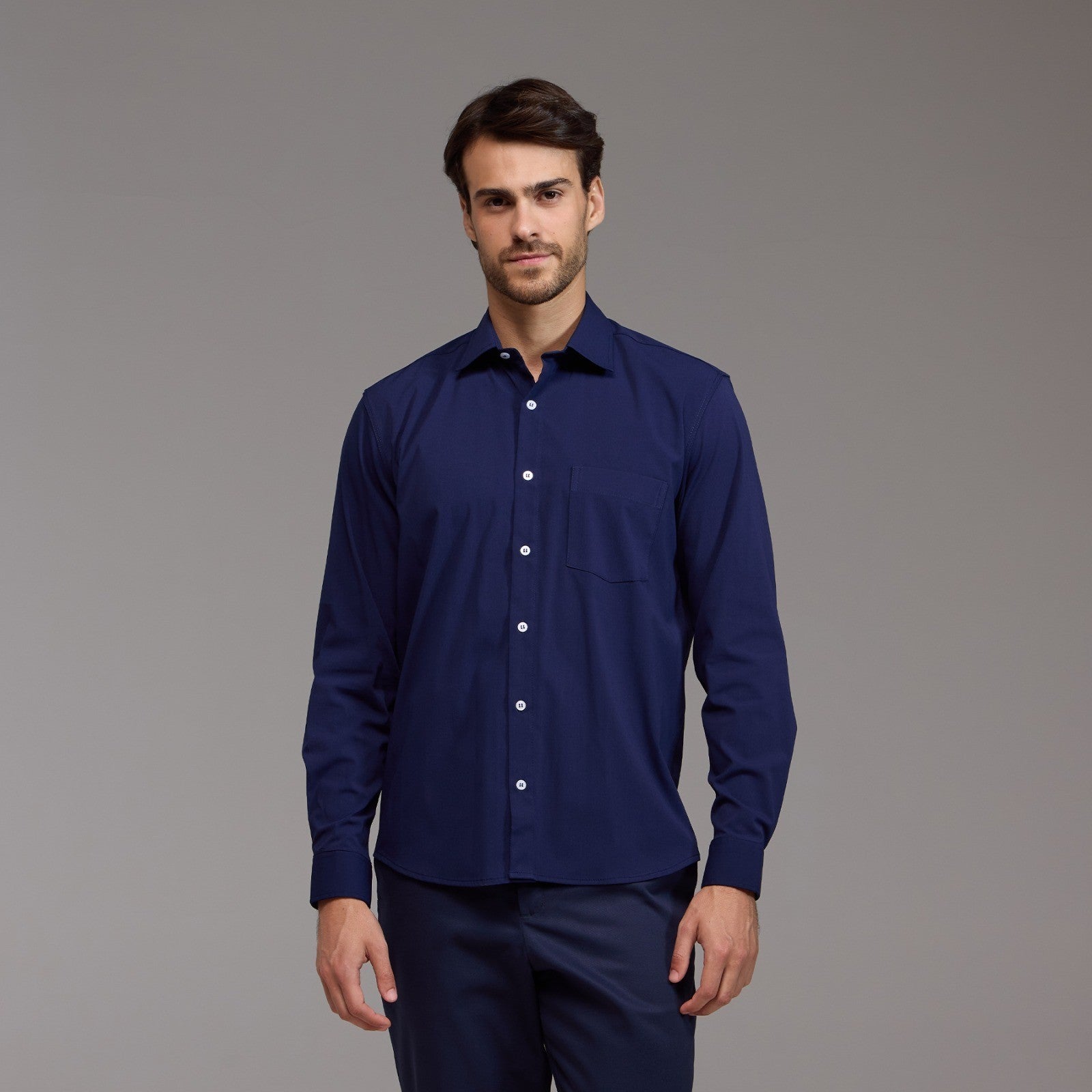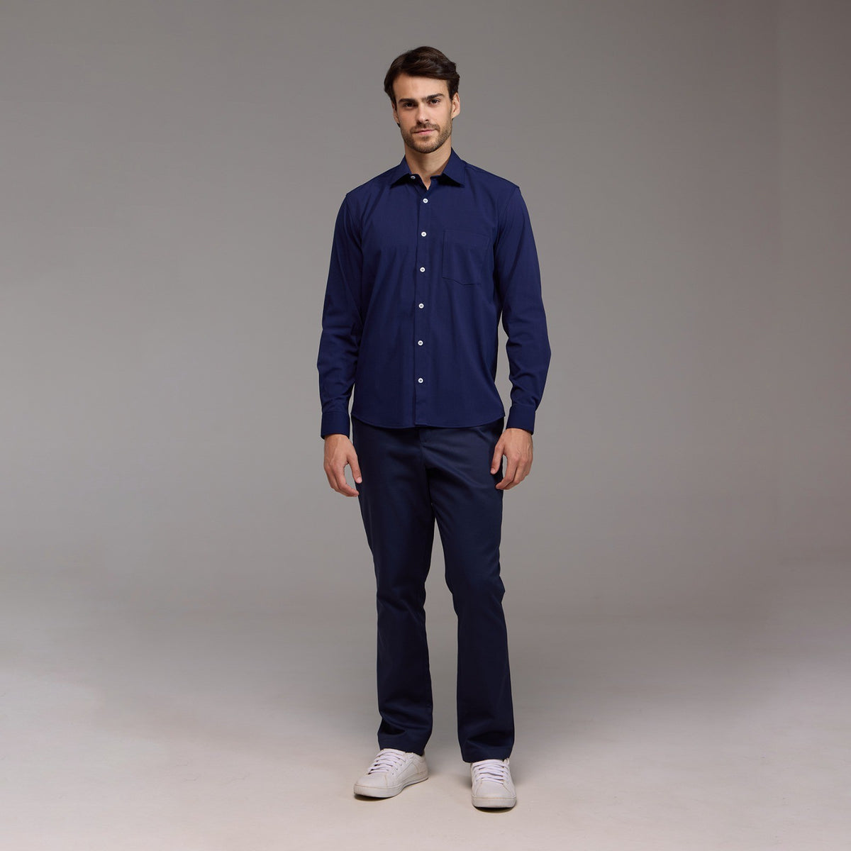 A Camisa Masculina Manga Longa Fábio é uma clássica camisa de botão, elegante e versátil, com modelagem tradicional para ser usada em composições mais formais.