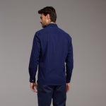 A camisa possui um abotoamento frontal simples, isso permite fácil colocação e remoção da peça, além de dar um aspecto limpo e organizado. Possui um bolso na lateral esquerda, na altura do tórax, conveniente para armazenar objetos pequenos.