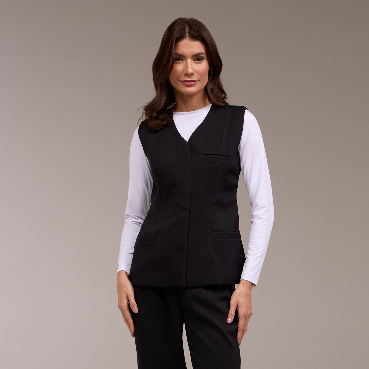 O Colete Feminino com Zíper Lala é uma peça moderna e prática para o trabalho. Ele apresenta um fechamento em zíper interno, que confere um acabamento discreto e elegante.