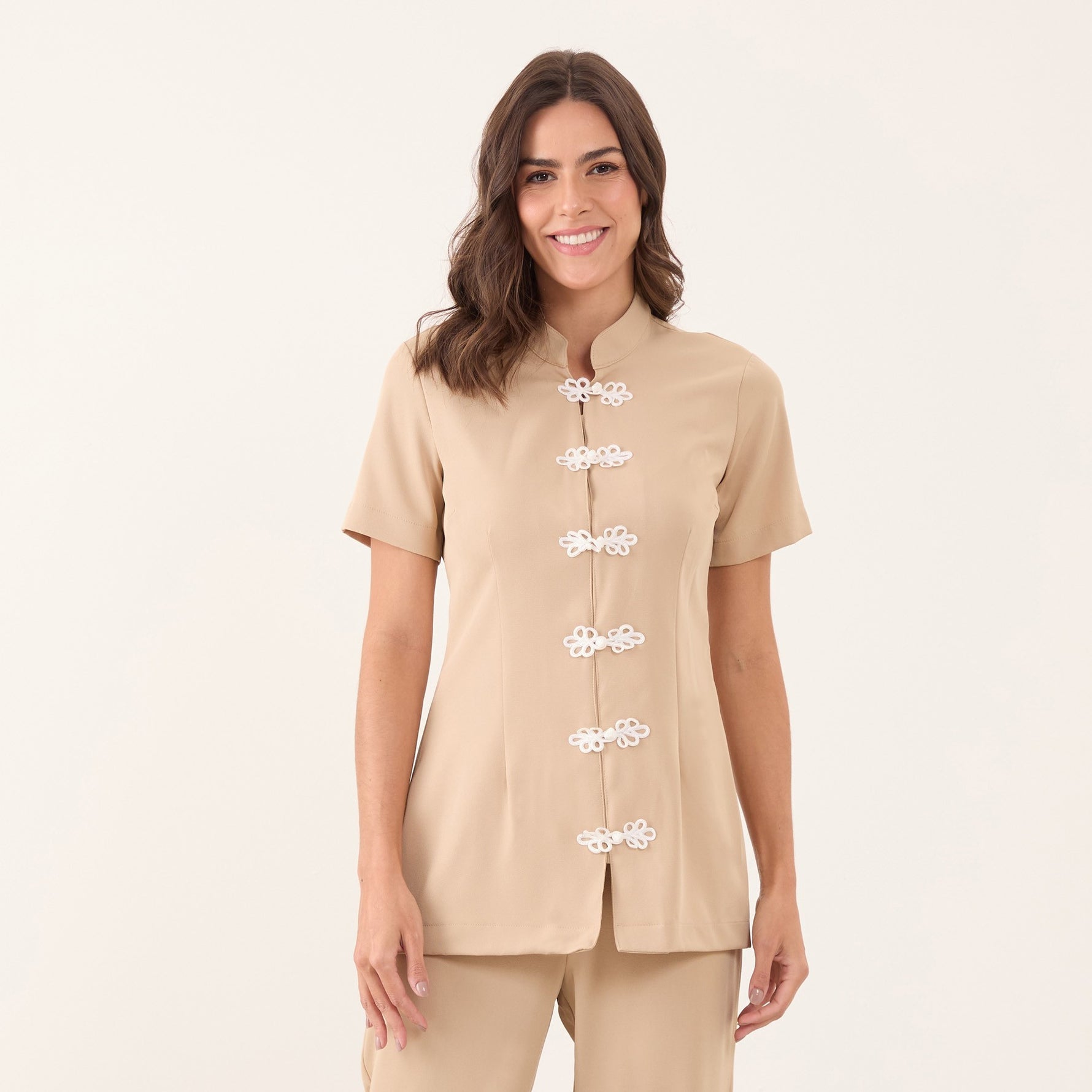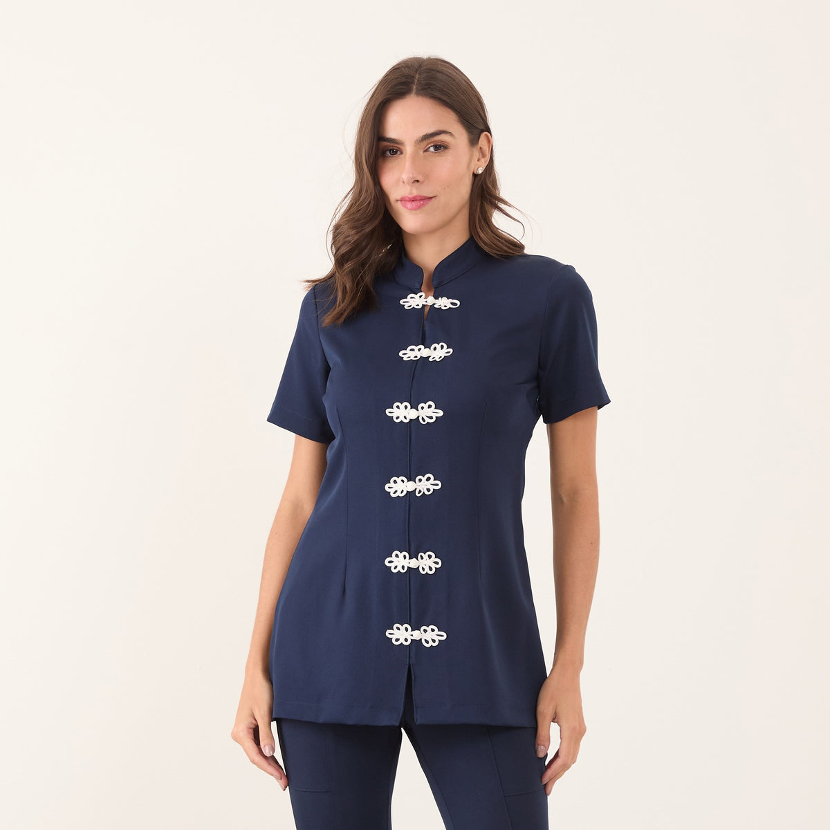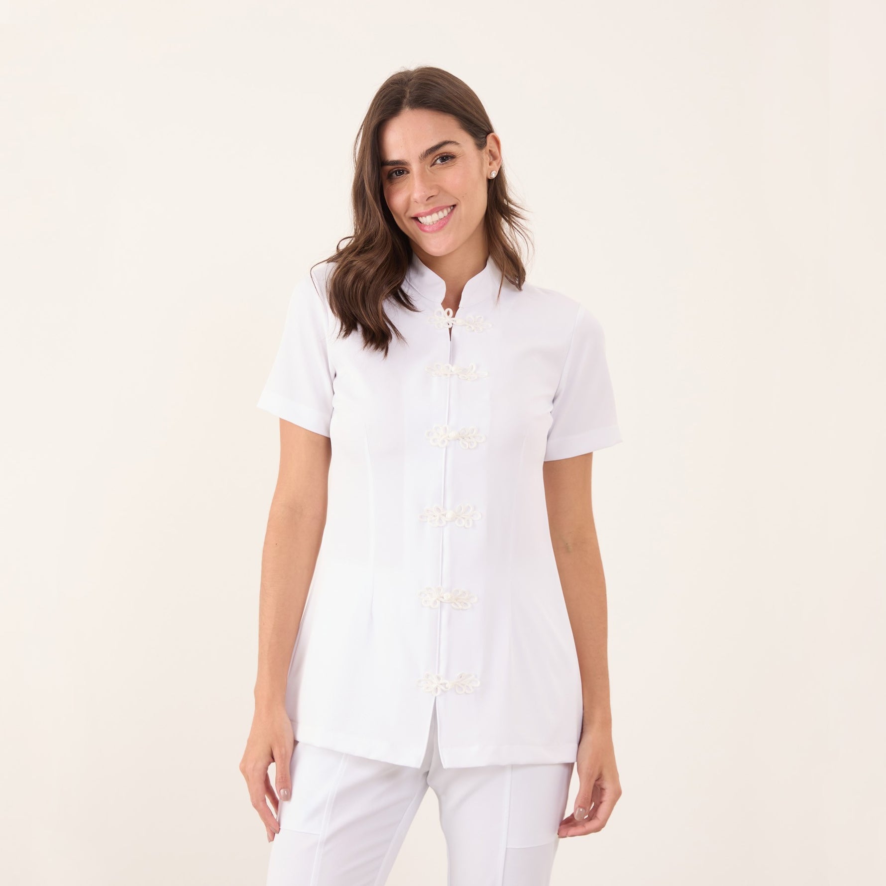 O Jaleco Feminino Manga Curta Yang é uma peça de vestuário essencial para profissionais que buscam unir elegância, conforto e praticidade em seu dia a dia.