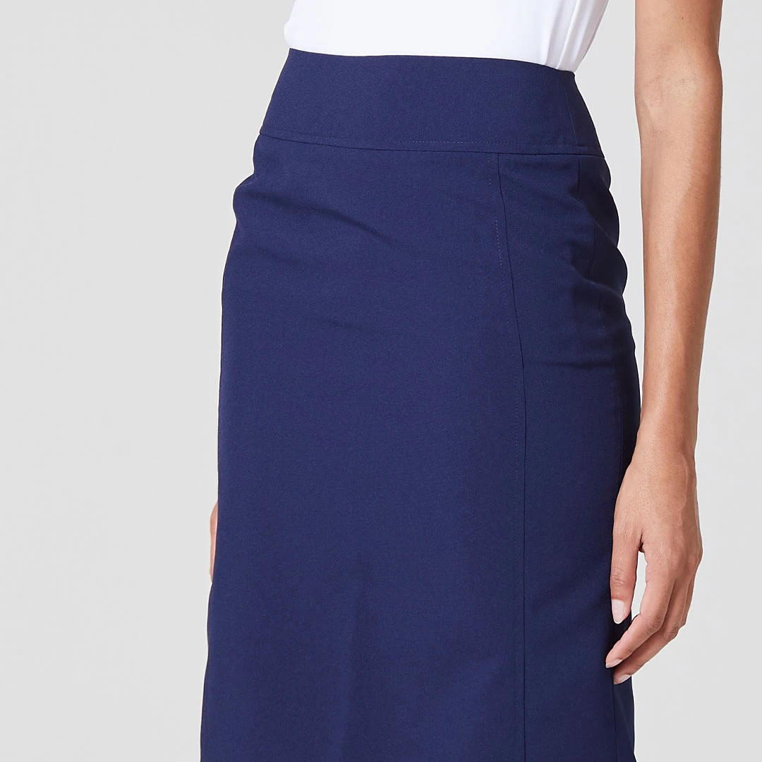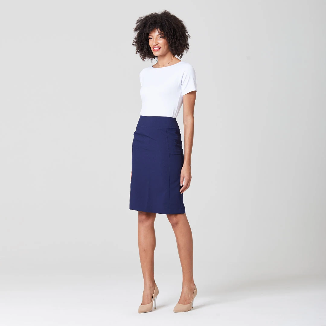 A combinação da modelagem reta com o recorte vertical cria um visual alongado, tornando a saia Pietra uma ótima opção para mulheres de diferentes biotipos, pois favorece a aparência de forma geral.