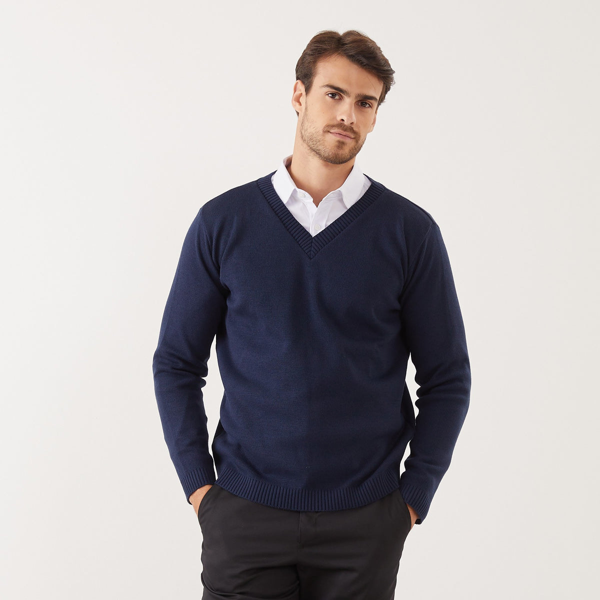 O Suéter Masculino Nicolas LA é uma escolha clássica e confortável para compor o uniforme nos dias mais frios de trabalho.