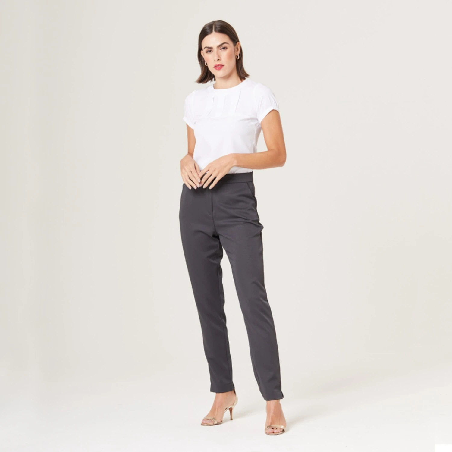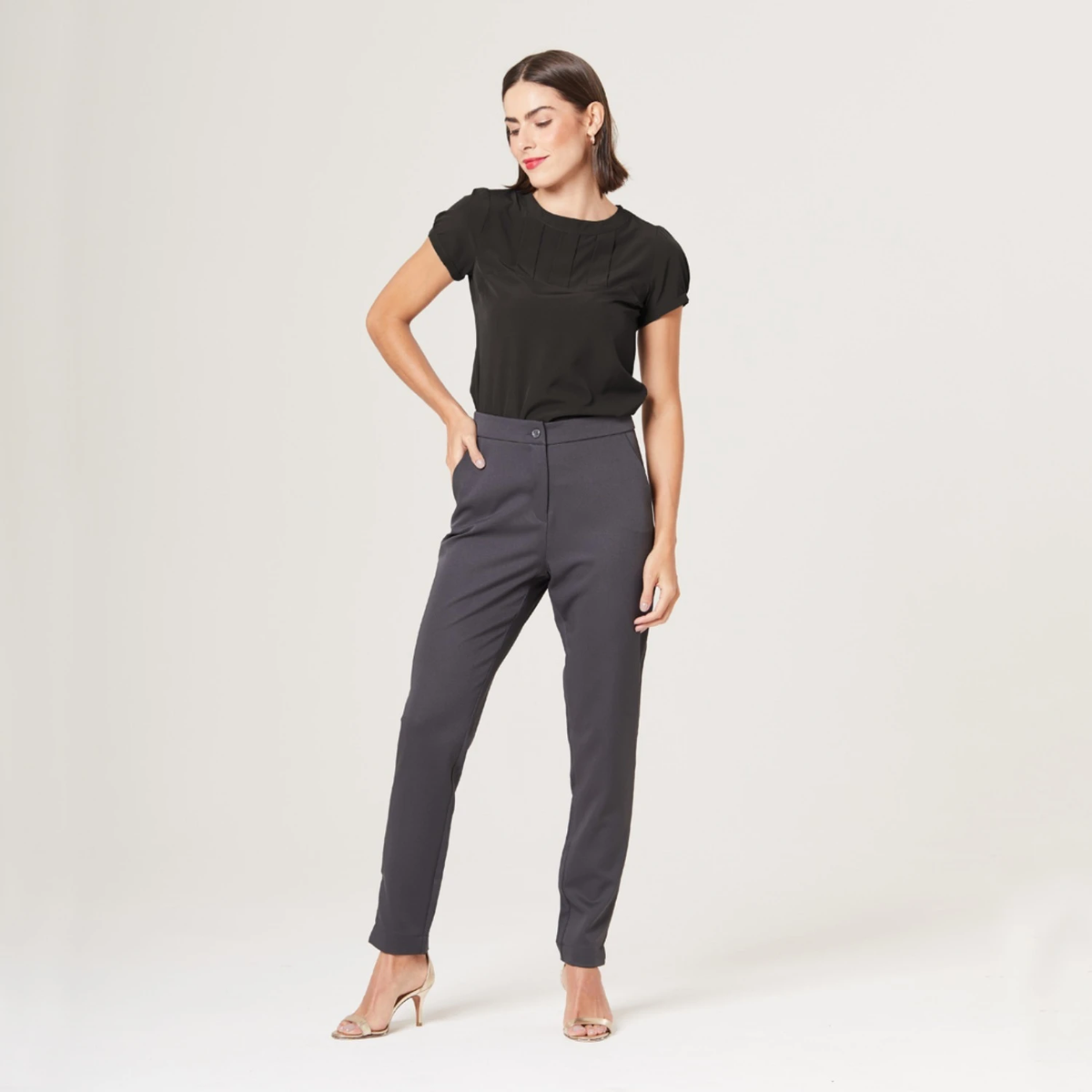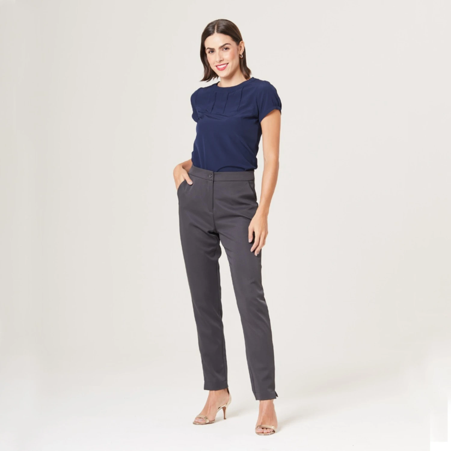 Seu destaque são as 3 pregas e o recorte na horizontal delicadamente posicionados na região do busto que tornam a peça moderna e diferenciada para o ambiente de trabalho.