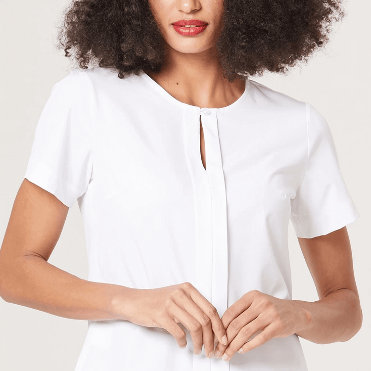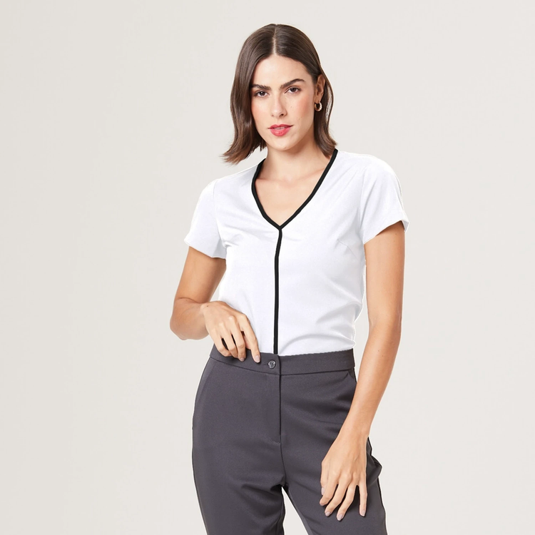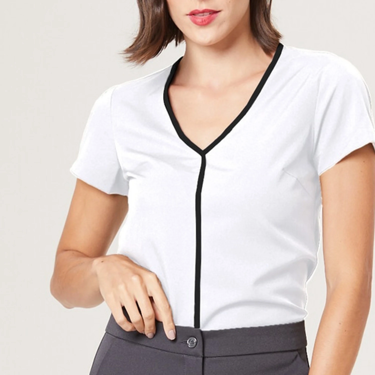 A Blusa Feminina Manga Curta Eliane é a escolha perfeita para profissionais que buscam um uniforme que una estilo, conforto e elegância.