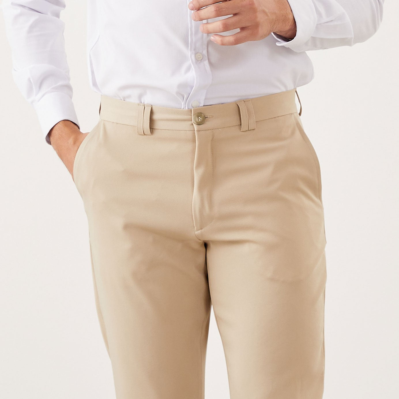 A calça é confeccionada em tecido de alfaiataria flex, o que significa que ela possui uma composição que combina durabilidade e maleabilidade, permitindo maior liberdade de movimento e conforto.
