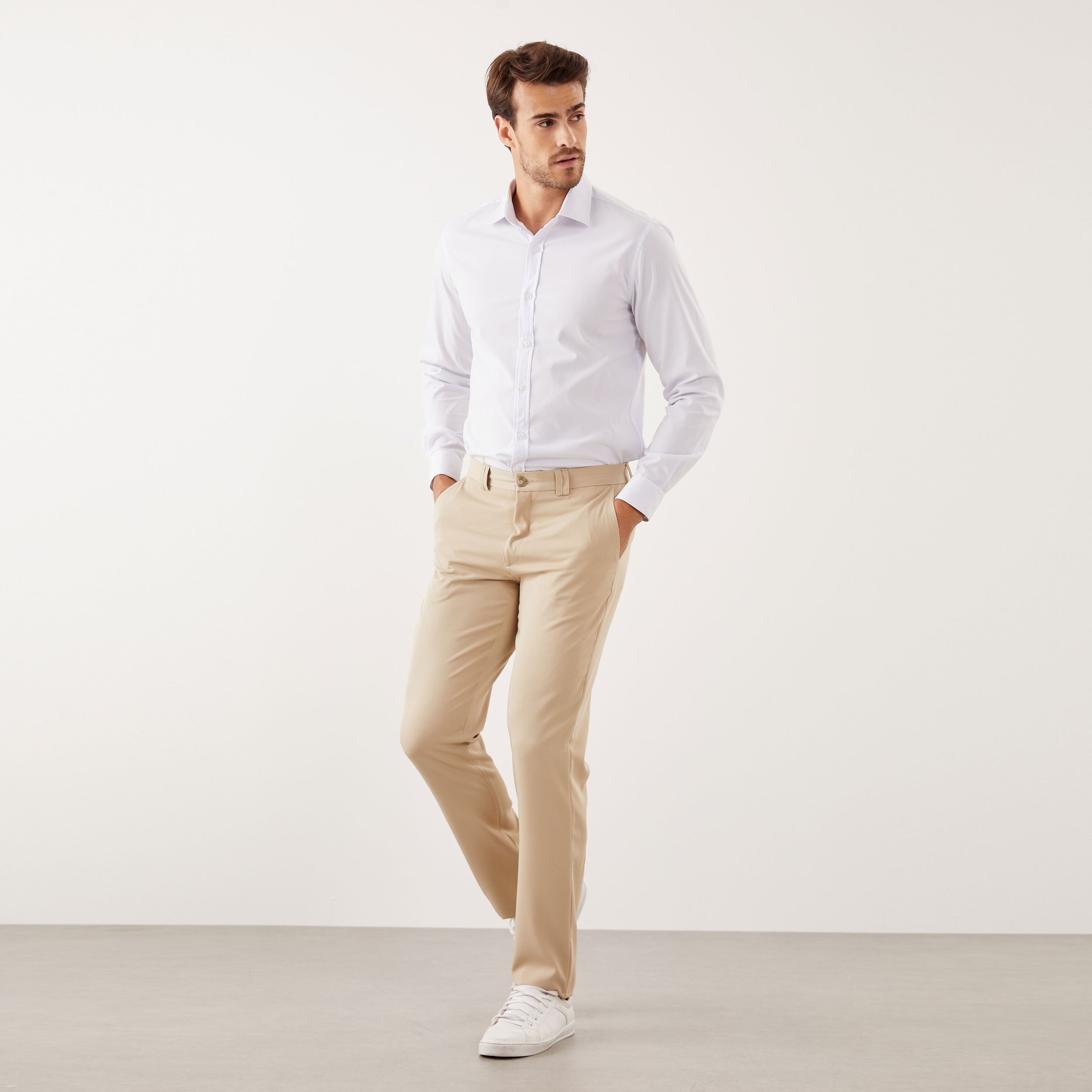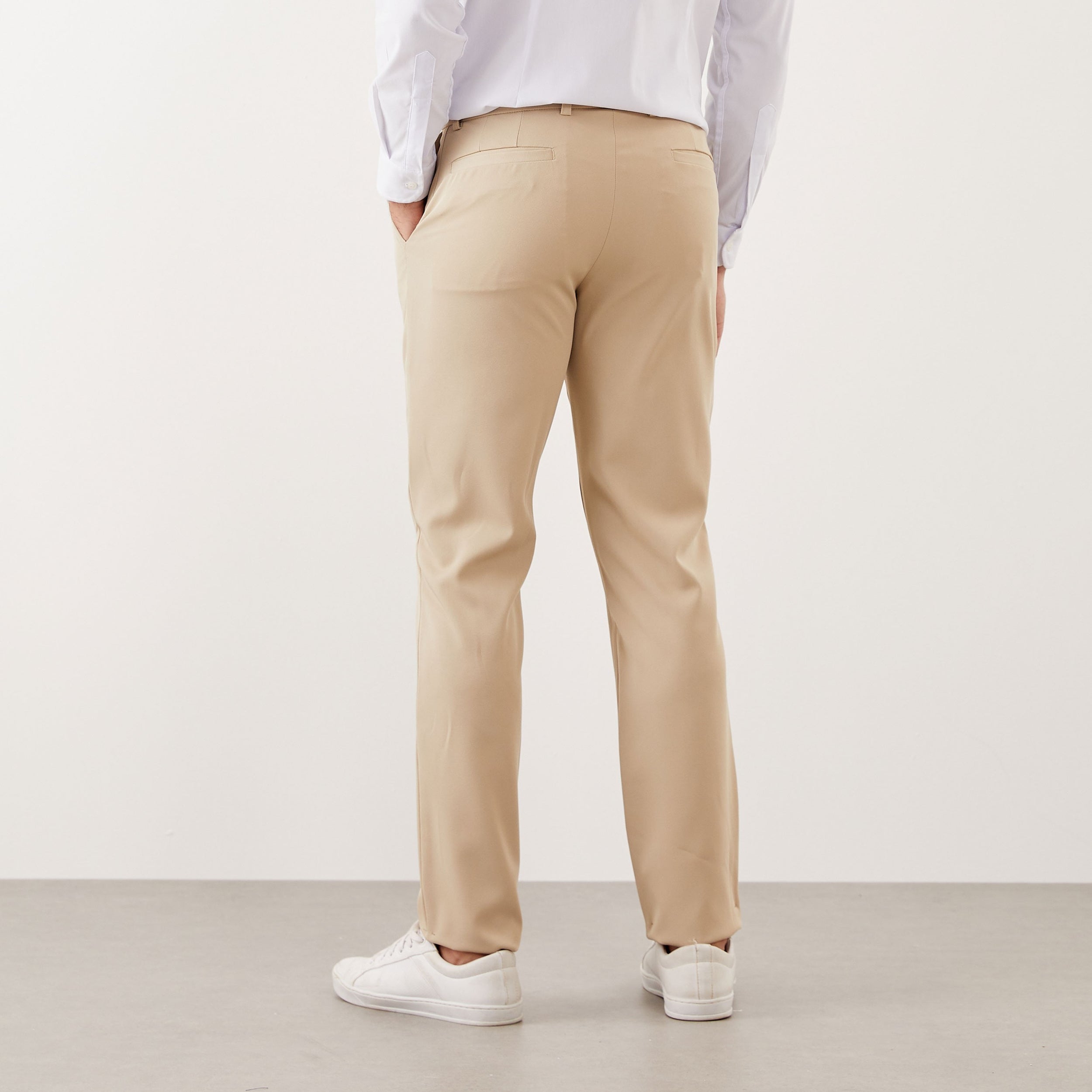 Além disso, a calça social Samuel possui dois bolsos embutidos nas costas, que conferem um visual mais sofisticado e funcionalidade para guardar itens pessoais.