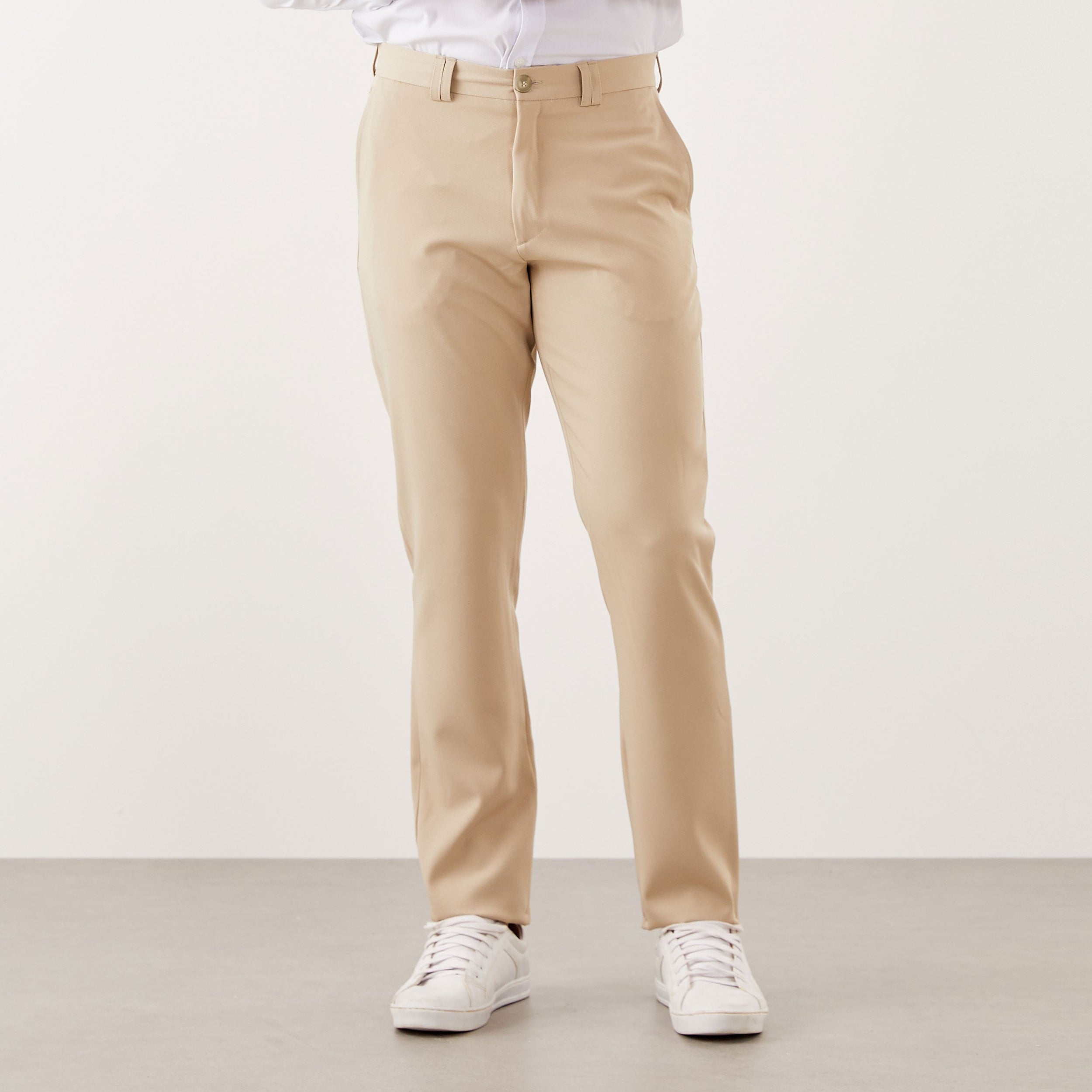 A Calça Social Masculina Samuel BE é uma peça de uniforme elegante e clássica. Ela apresenta uma modelagem reta, que proporciona um caimento mais solto.