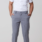 Além disso, a calça social Samuel possui dois bolsos embutidos nas costas, que conferem um visual mais sofisticado e funcionalidade para guardar itens pessoais. Os bolsos laterais também estão presentes, oferecendo espaço para as mãos ou para guardar pequenos objetos que precisem ser facilmente acessados.