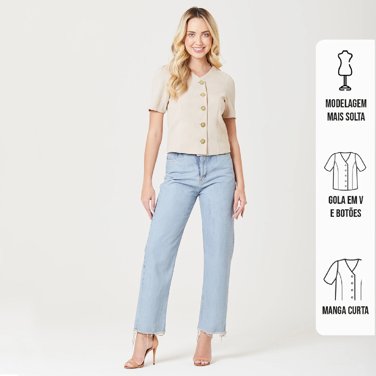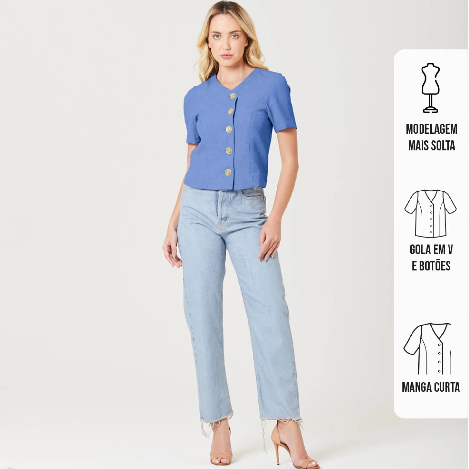 A nossa Blusa Juliana é mais uma das apostas da Dash! Ela é perfeita para você que procura uma peça elegante e moderna. Possui decote em V e botões dourados com acabamento colorido, garantia de estilo e modernidade!