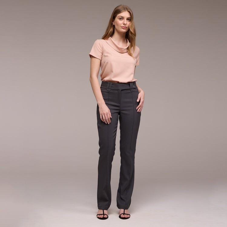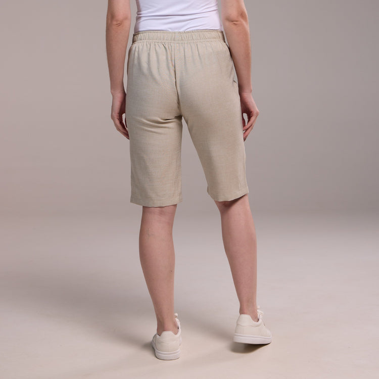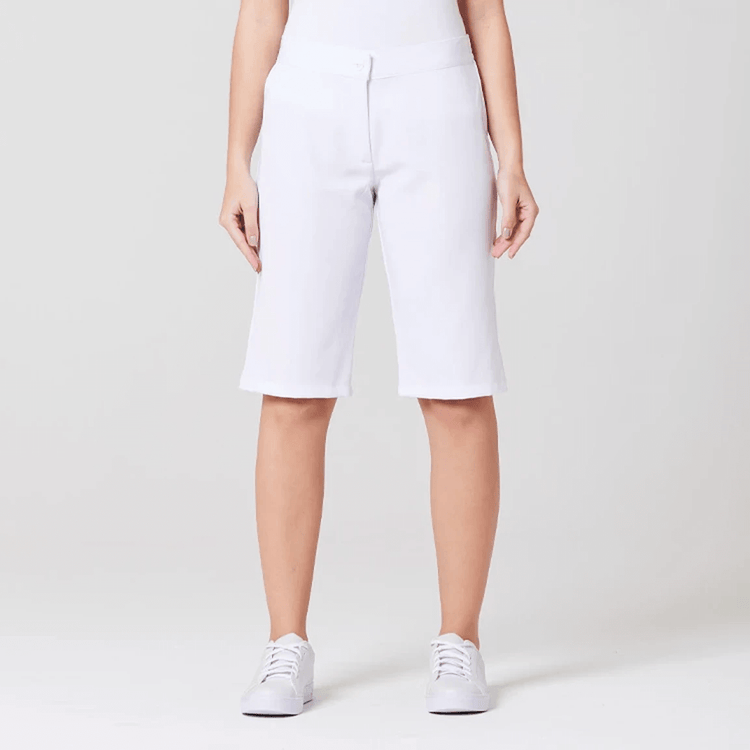 A Bermuda Feminina Meio Cós de Elástico Dora é uma peça de roupa que possui um meio cós de elástico, o que proporciona um ajuste confortável e flexível na cintura. Sua modelagem é reta, ou seja, ela segue uma linha reta ao longo das pernas, sem ser muito larga ou justa demais.