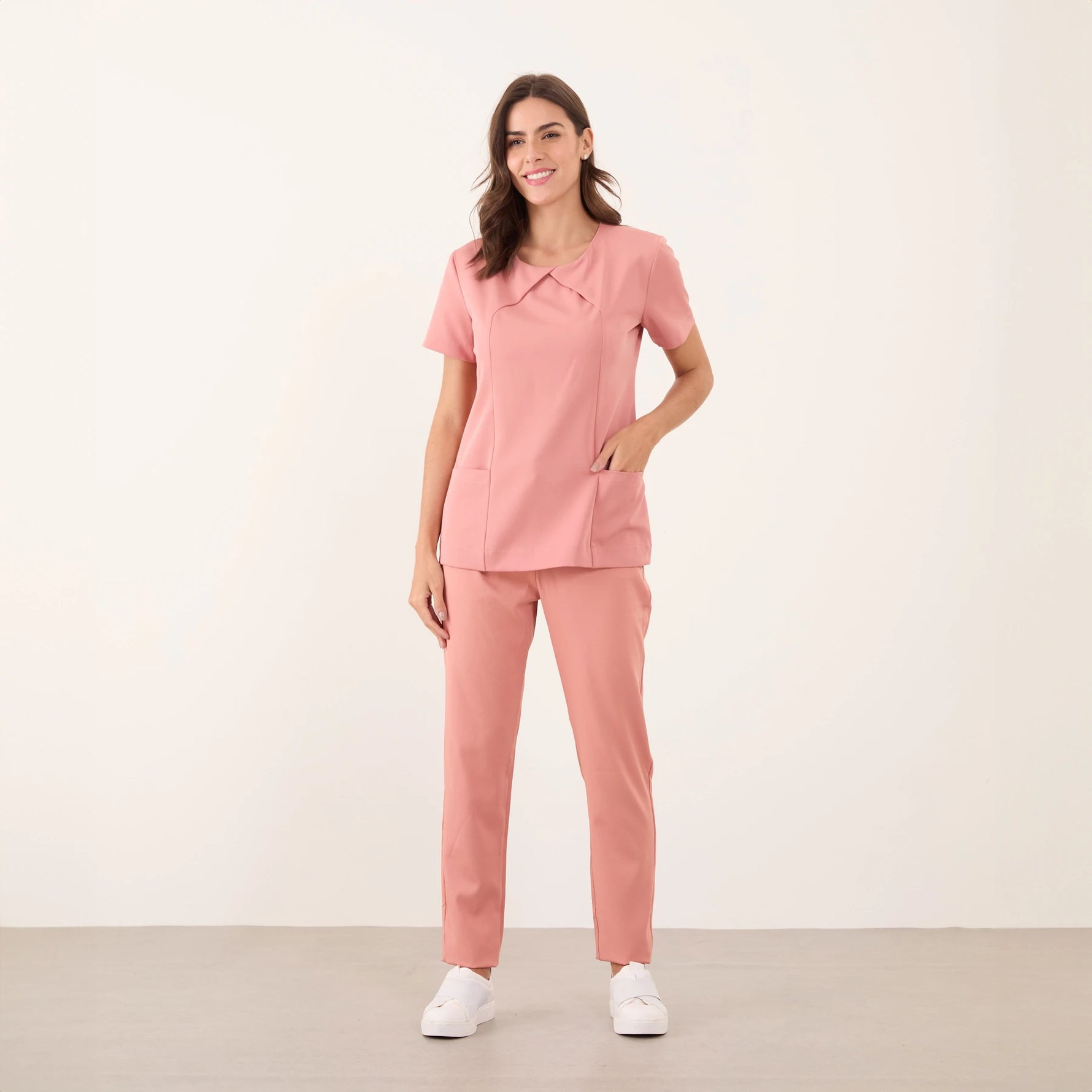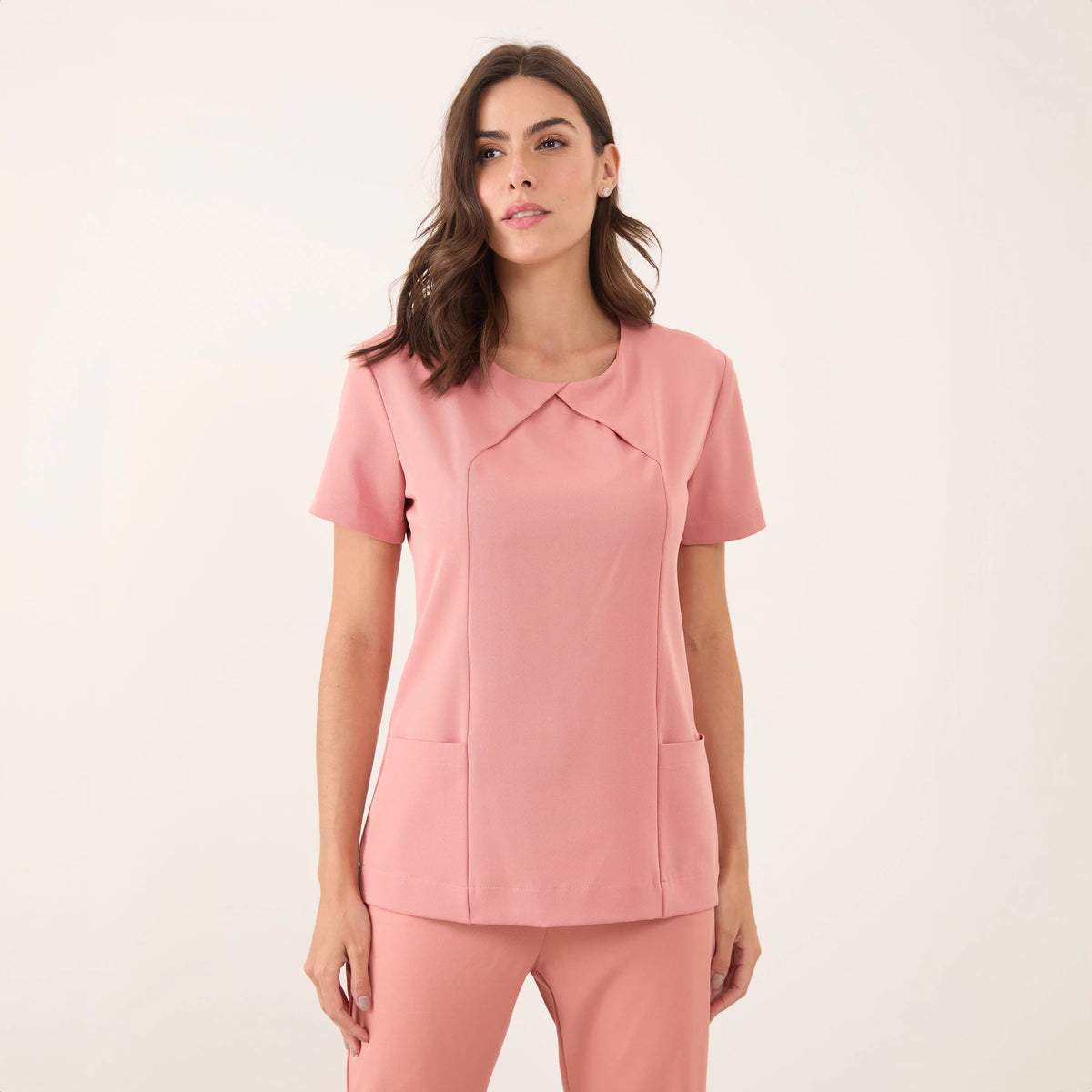 A Blusa Scrub Feminino Manga Curta Sol possui um detalhe no peito e dois bolsos chapados na base. Além de já ter uma modelagem super confortável, aliada a esse tecido, o Scrub Sol se torna a melhor opção para unir conforto, praticidade e design.