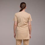 Uma particularidade do Jaleco Melanie é que ele não possui nenhum tipo de fechamento, como botões ou zíperes. Ele é projetado para ser vestido de forma aberta, sem a necessidade de amarrar ou prender a peça. Essa característica contribui para um aspecto mais casual e descontraído do jaleco, sem perder a elegância.