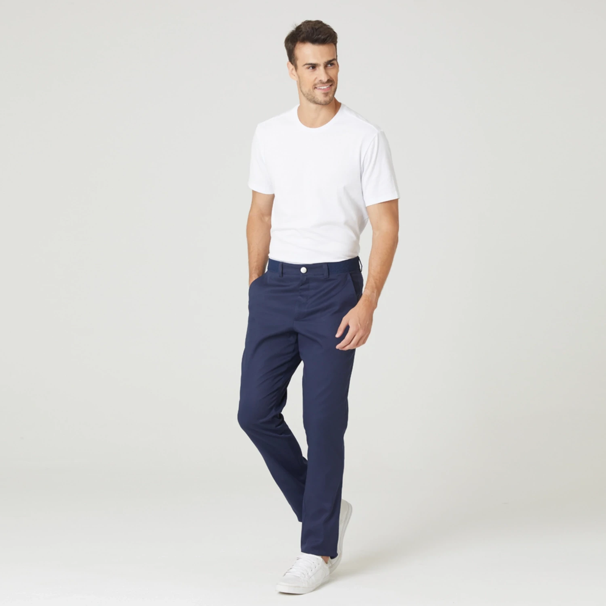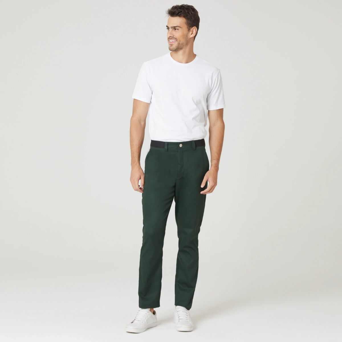 Tecido com Algodão - Apesar de ser mais ajustada ao corpo, a modelagem slim é feita com tecidos leves e flexíveis, o que proporciona maior conforto e liberdade de movimentos.