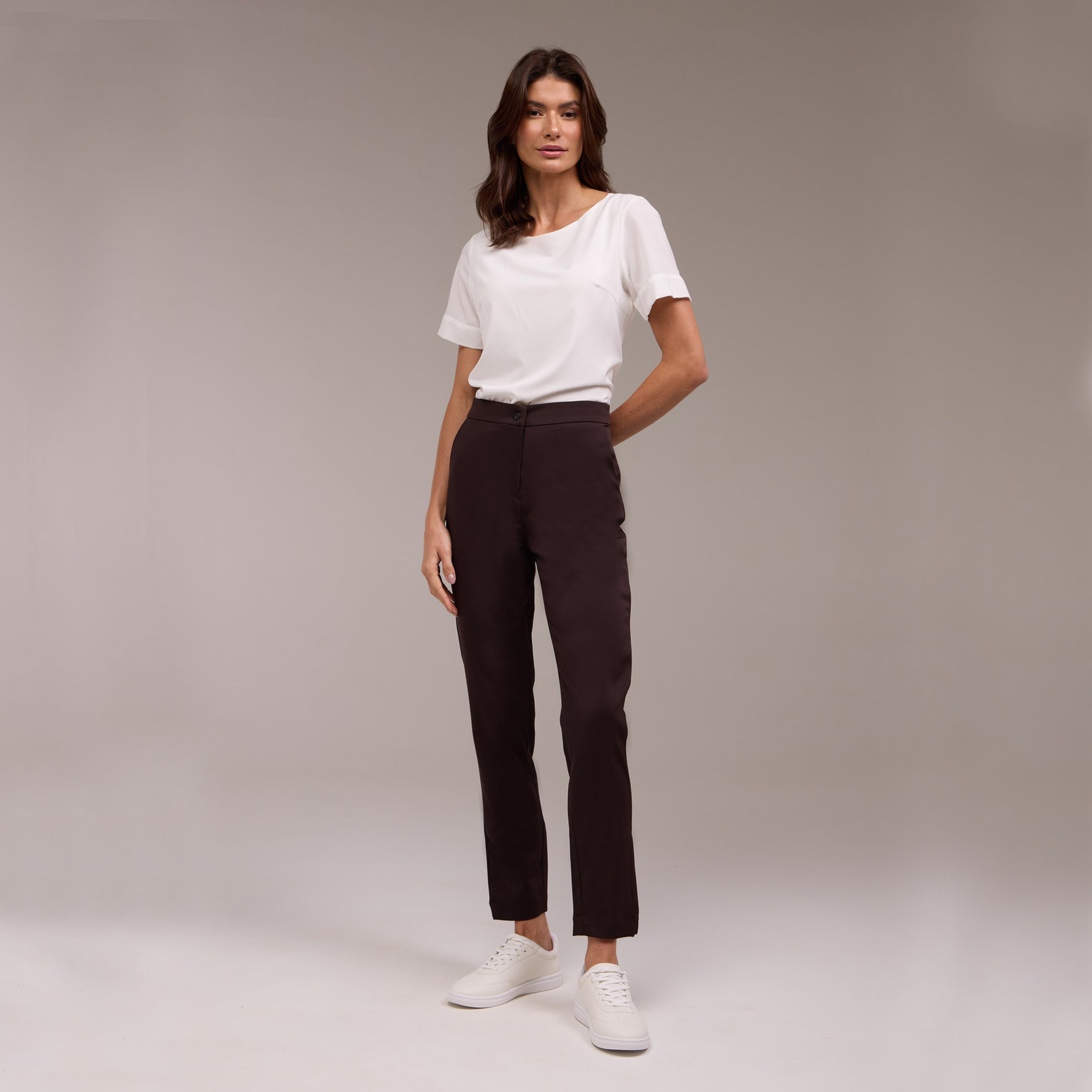 A Calça Cigarrete Social Cecília é a escolha perfeita para quem busca transparecer uma imagem alinhada e sofisticada no ambiente de trabalho, sem abrir mão da praticidade e versatilidade que a rotina corrida pede.