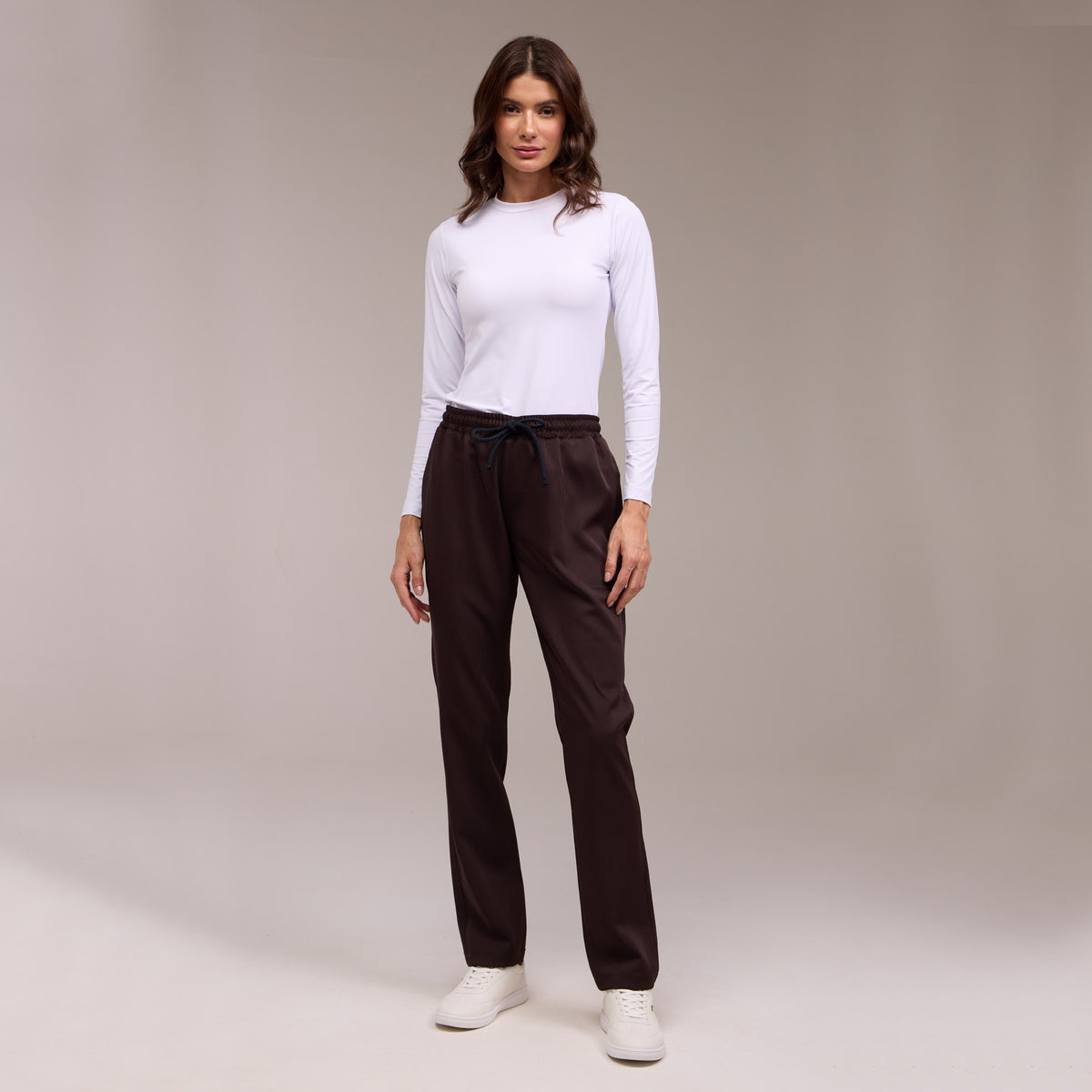 Modelagem Reta - A modelagem reta oferece espaço e liberdade de movimento. As pernas da calça não possuem excesso de tecido nem apertos indesejados, permitindo que você se mova com facilidade e conforto ao longo do dia.