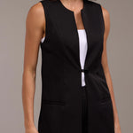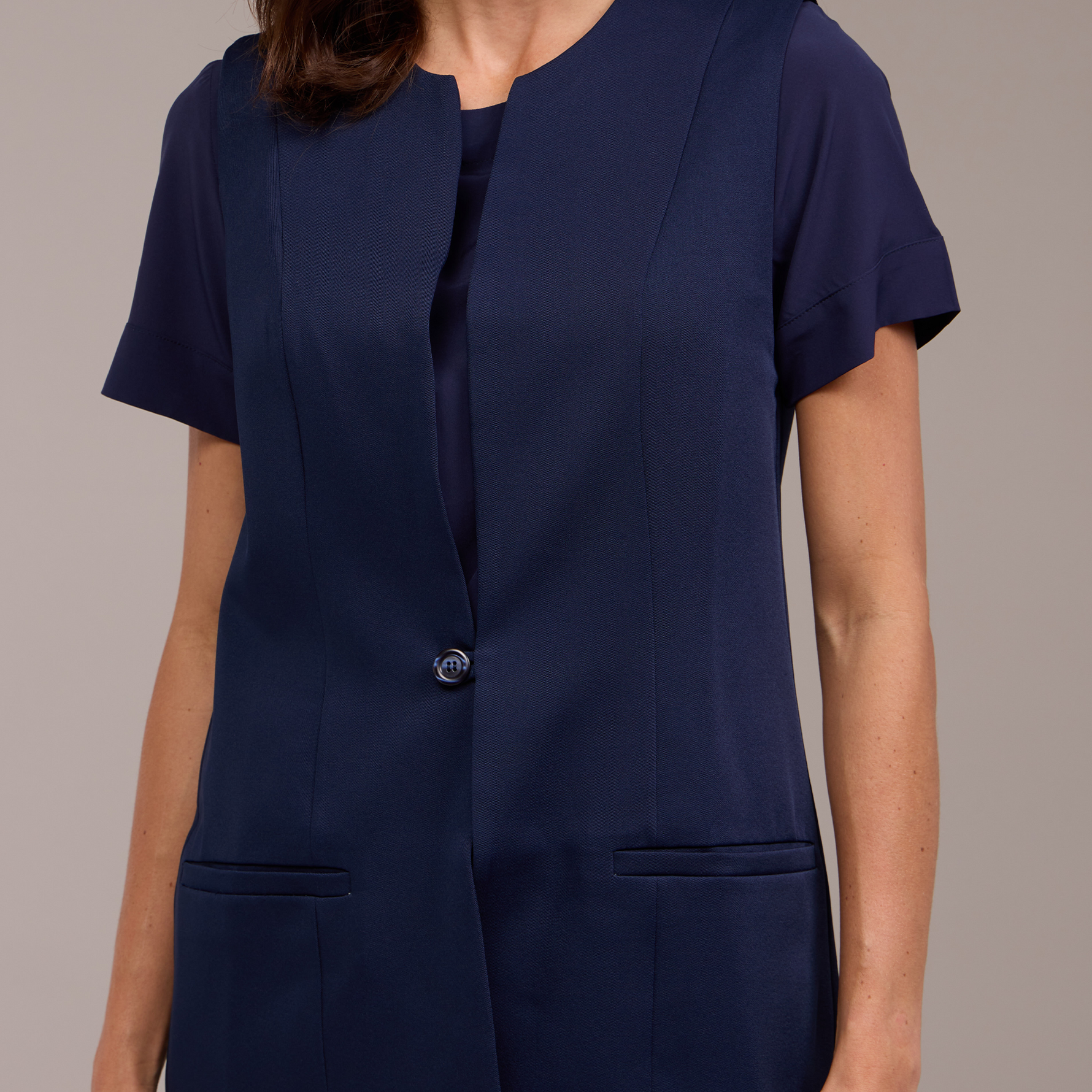 Fechamento com Um Botão - Oferece um ajuste seguro e prático. Esse detalhe acrescenta um toque de charme ao colete, além de possibilitar o uso aberto, criando um efeito mais descontraído.