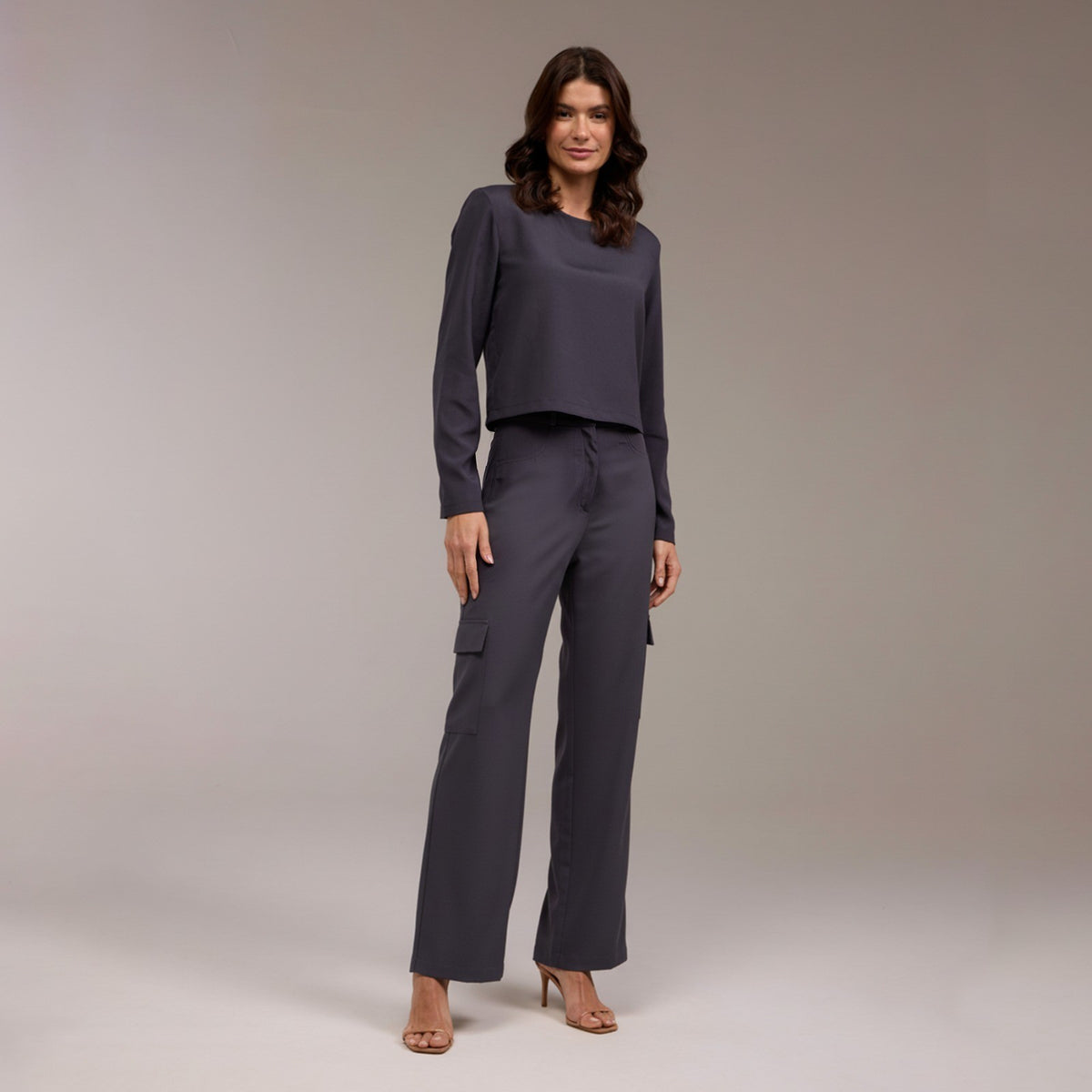 A Calça Feminina Reta Cargo Silvia é uma peça elegante e sofisticada, projetada para realçar a figura feminina de maneira moderna e atemporal.