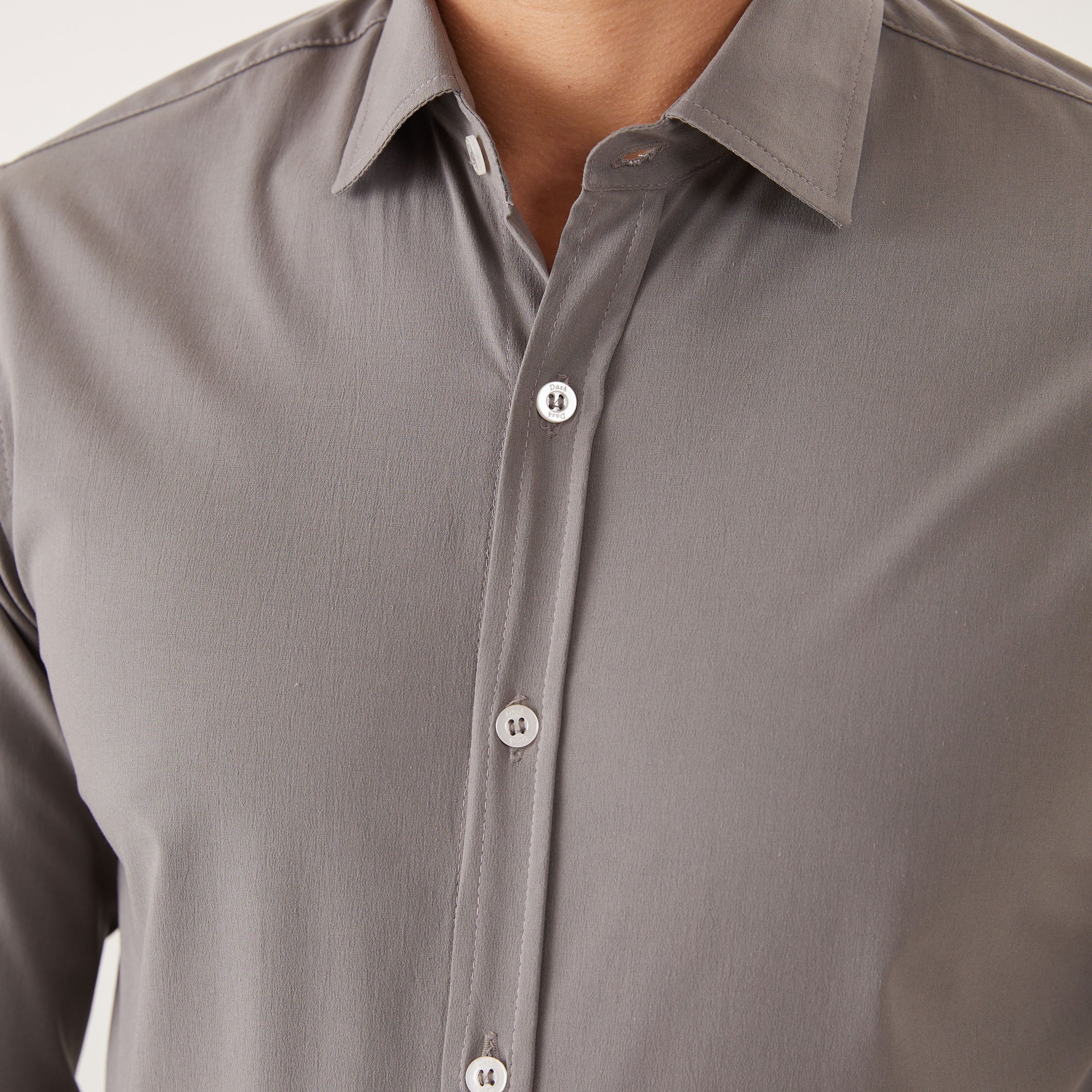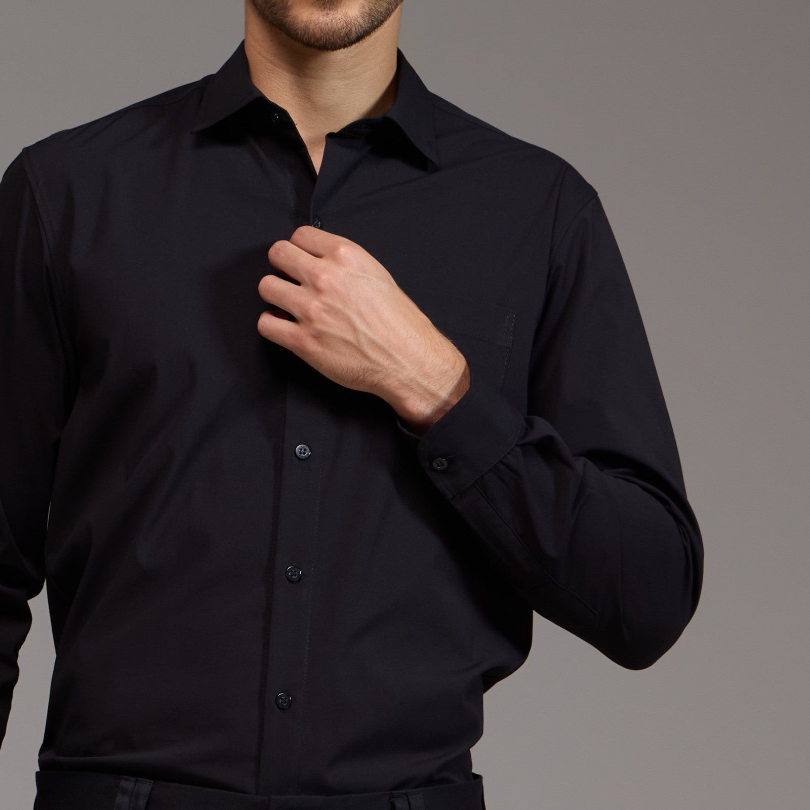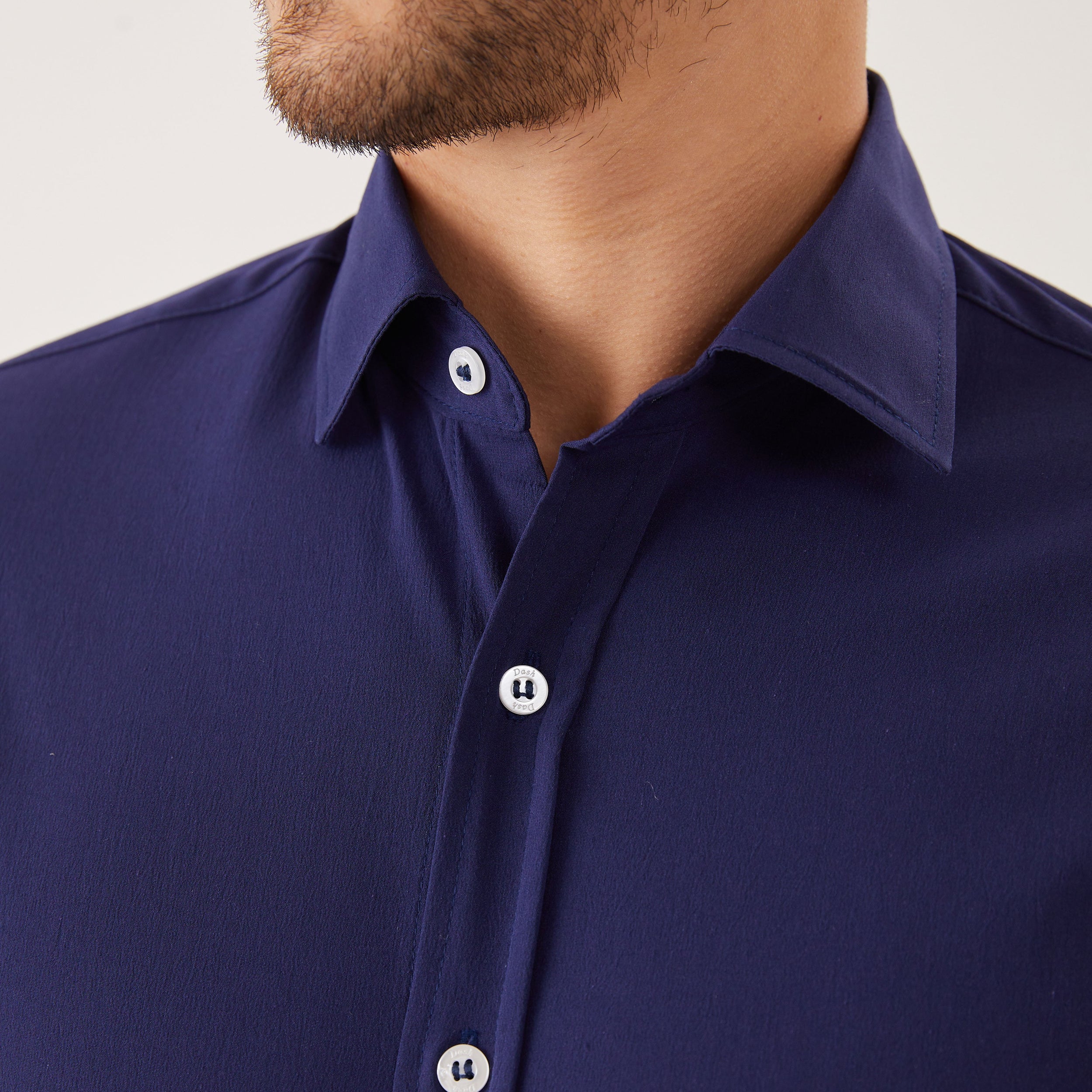 A camisa também apresenta uma gola social, que é mais estruturada, o que confere um toque de sofisticação ao visual.