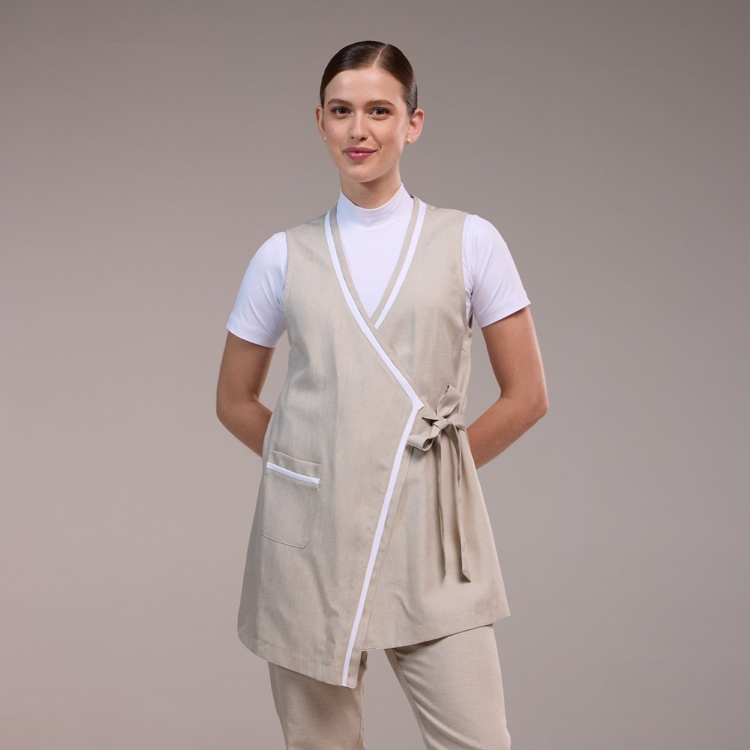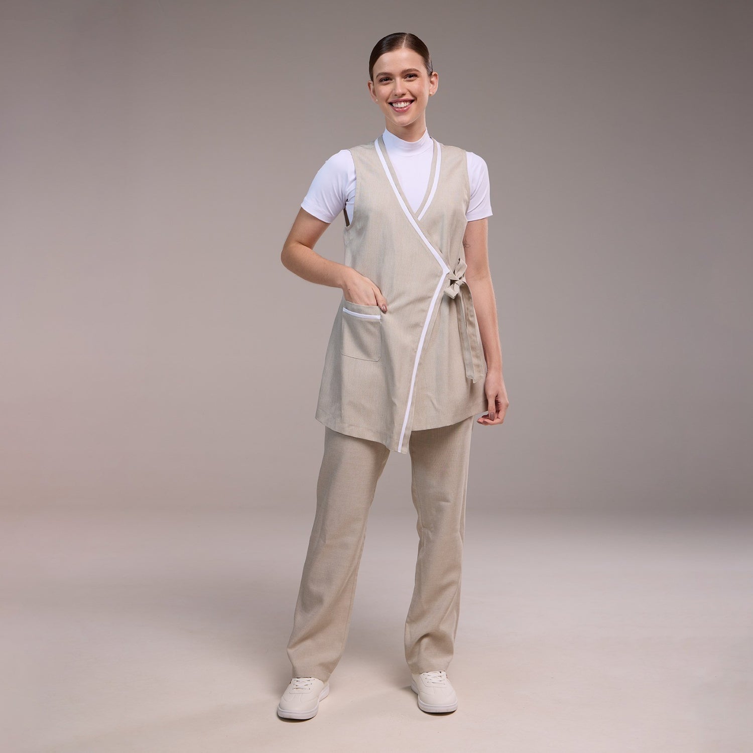 O Jaleco Feminino Manga Curta ¾ Antonela é uma peça que apresenta um design moderno e confortável. Com um decote em V, o jaleco realça sutilmente a região do colo e traz atenção para a área do rosto.