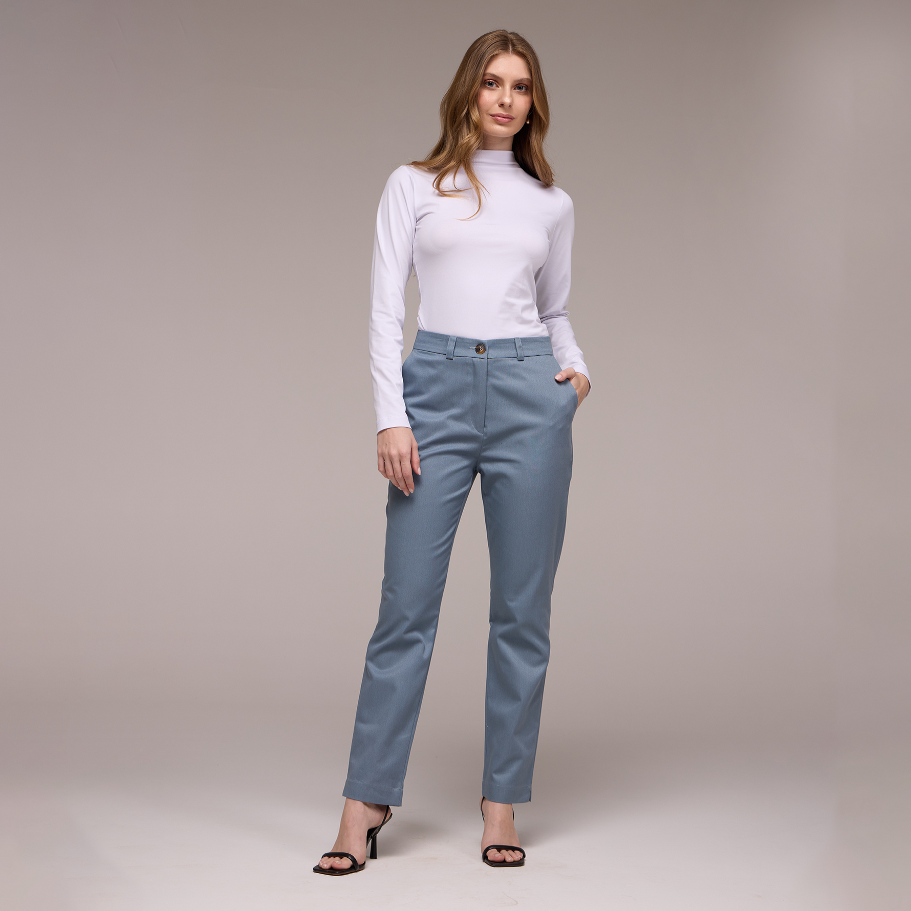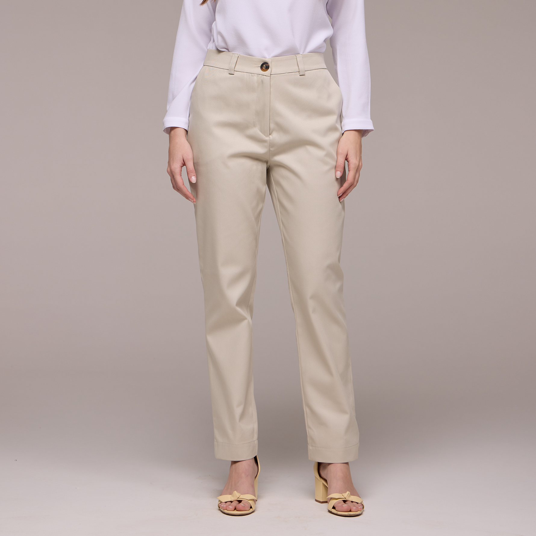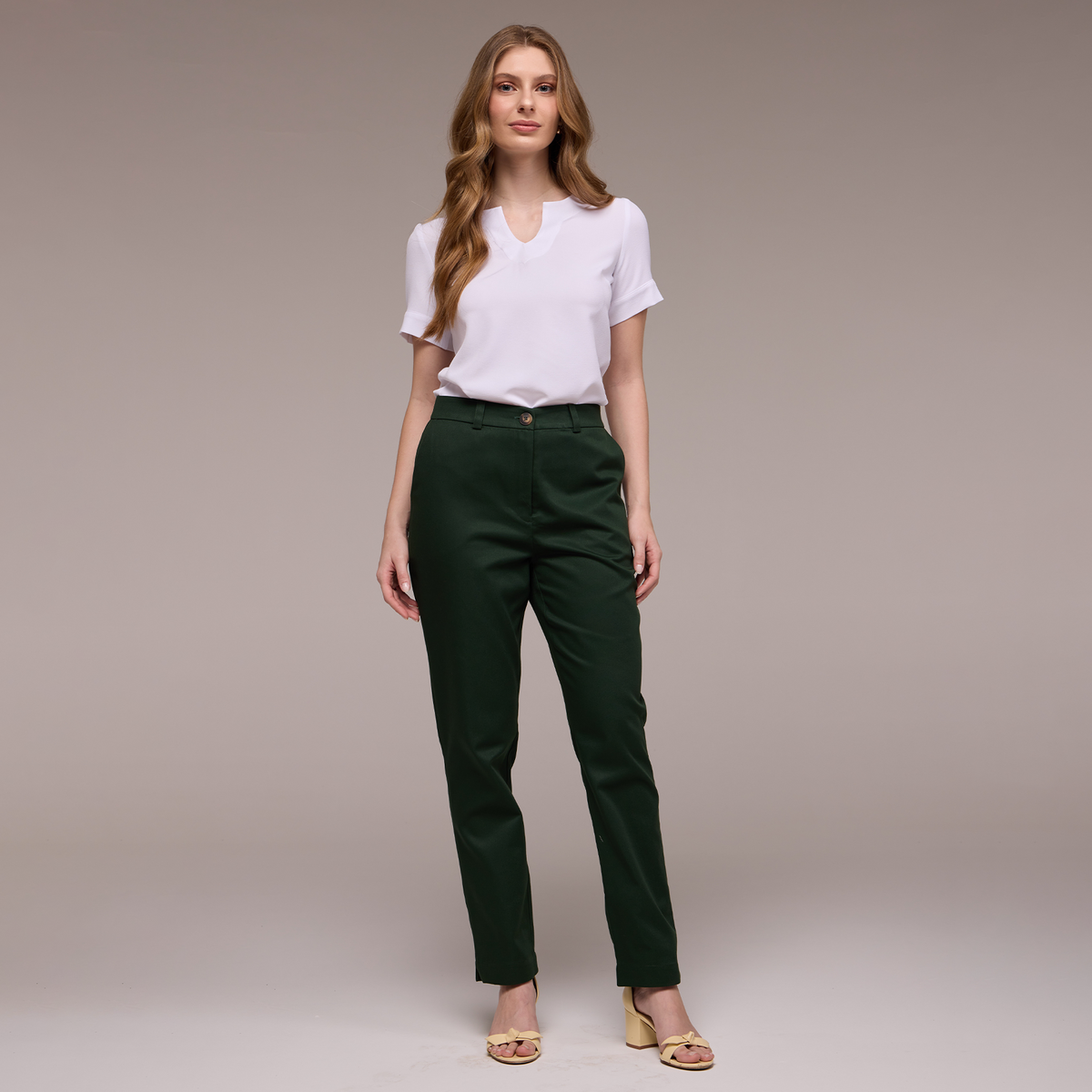 A Calça Feminina Cigarrete Maya é uma peça elegante e sofisticada projetada especialmente para profissionais que trabalham na recepção de hotéis com estilo praia.