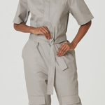 Este macacão apresenta mangas mais amplas que proporcionam um toque de fluidez e movimento à peça.