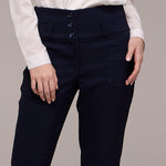 Além disso, a calça flare Bruna possui um abotoamento frontal de três botões, o que oferece um fechamento mais confortável e seguro.