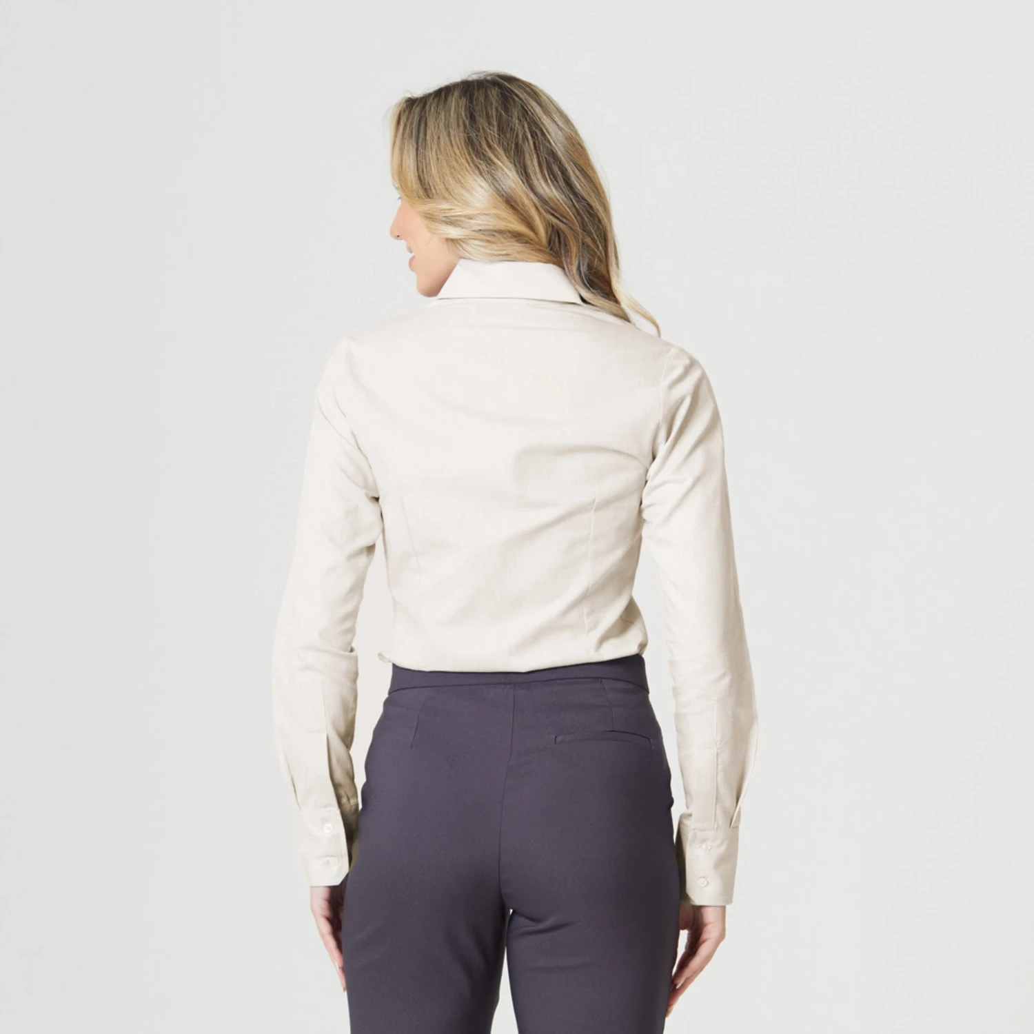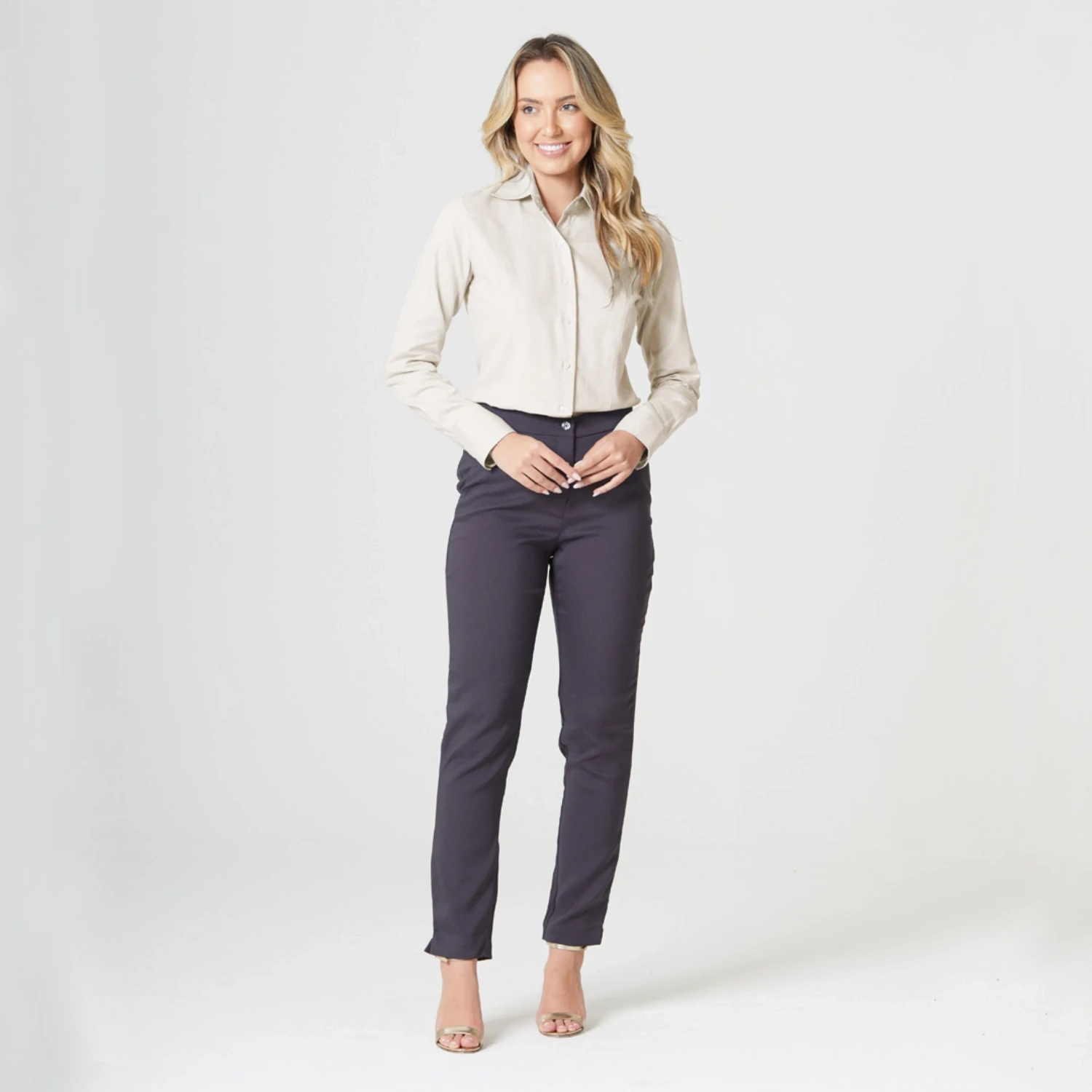 A Blusa Feminina Manga Longa Nadine é uma clássica camisa de botão, elegante e versátil para ser usada em composições mais formais.