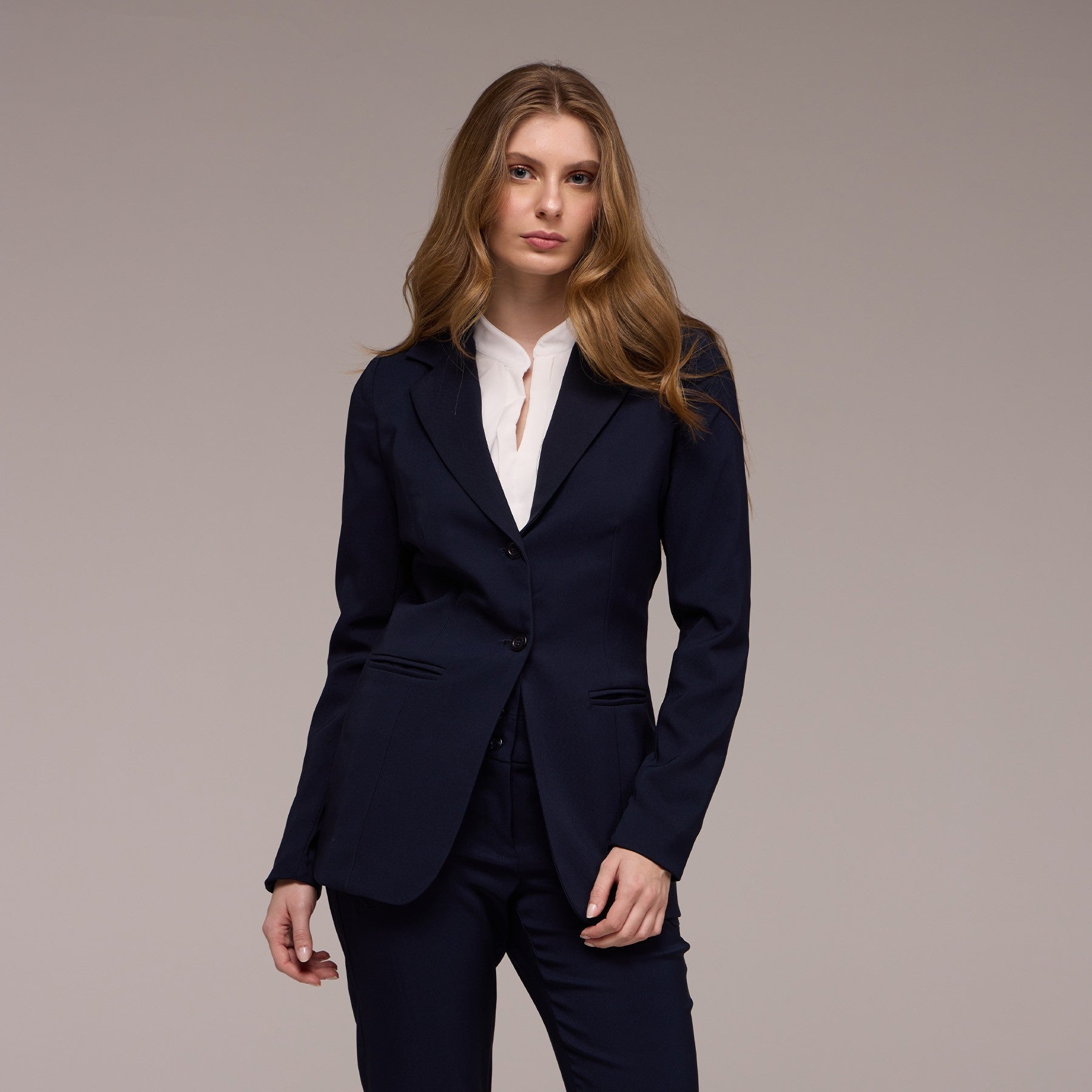 Os bolsos embutidos na base do blazer são práticos e discretos, permitindo que você mantenha seus pertences pessoais por perto sem comprometer o visual profissional. o caimento estruturado do blazer ajuda a manter a forma da peça ao longo do dia, garantindo que você esteja sempre apresentável.