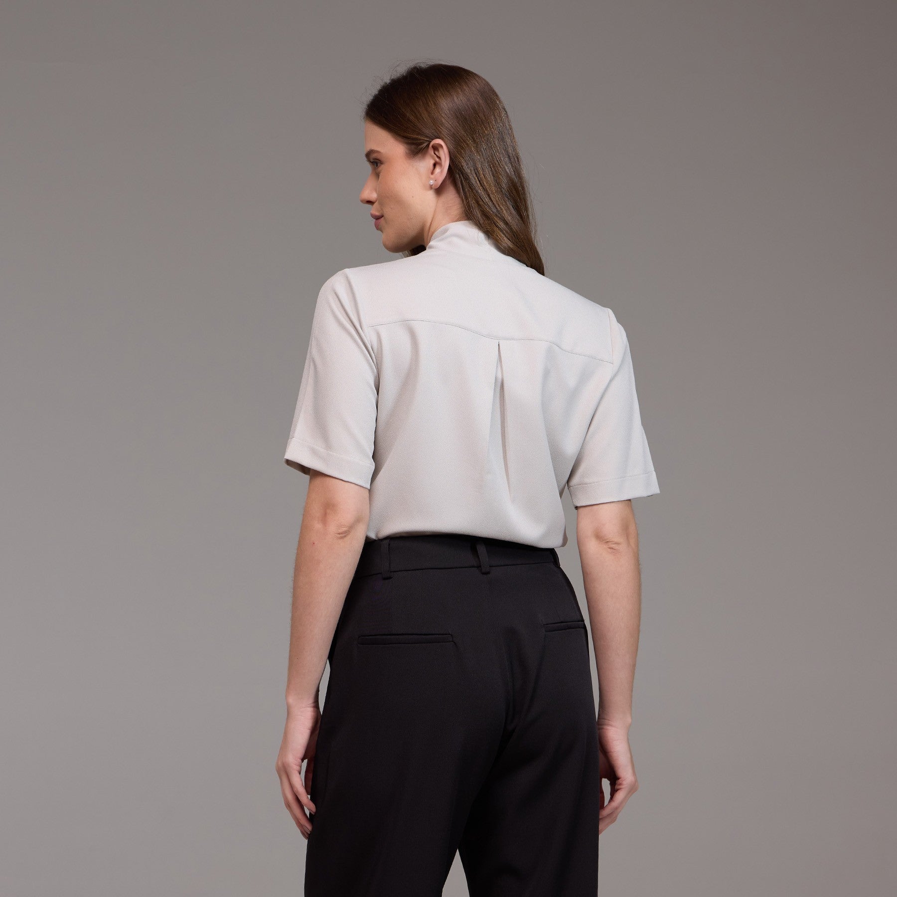 A Blusa Feminina Manga Curta Agata é uma peça moderna e com detalhes únicos, projetada para proporcionar conforto e estilo no ambiente de trabalho.