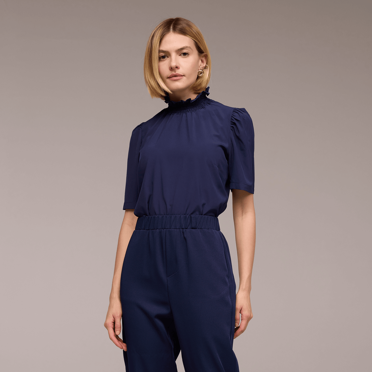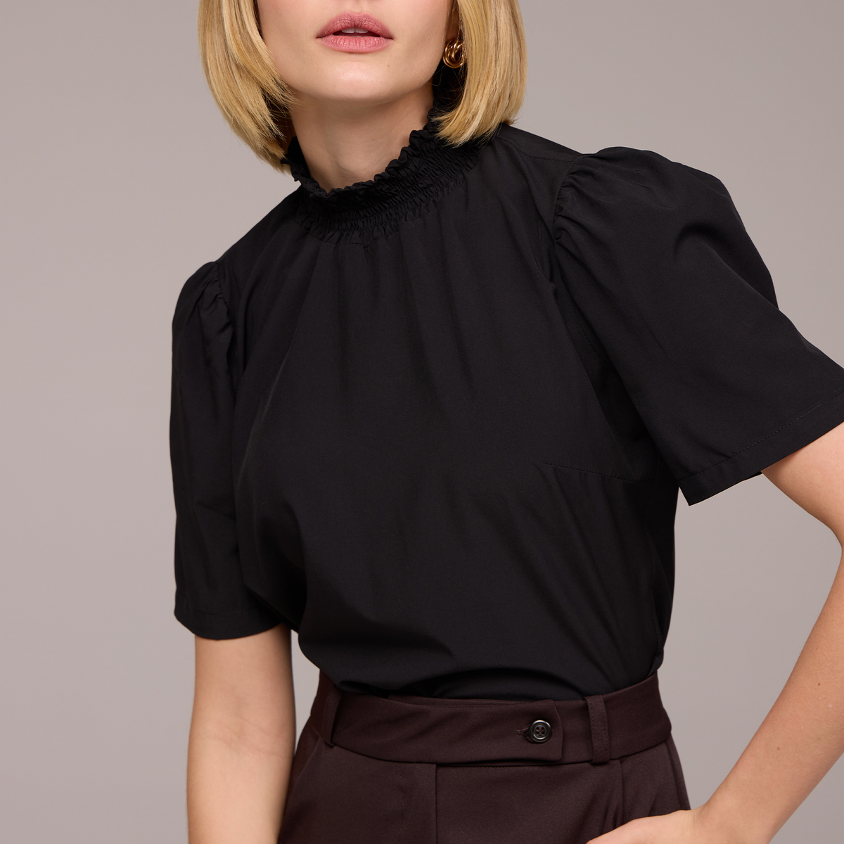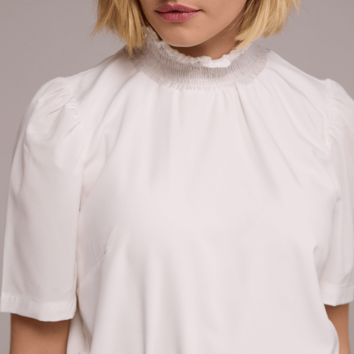 A Blusa Feminina Manga Curta Maite é uma peça elegante e moderna. O destaque dessa blusa está na gola, que possui um detalhe franzido em lastex, que proporciona um visual diferenciado e com informação de moda, além de oferecer um ajuste confortável ao redor do pescoço.