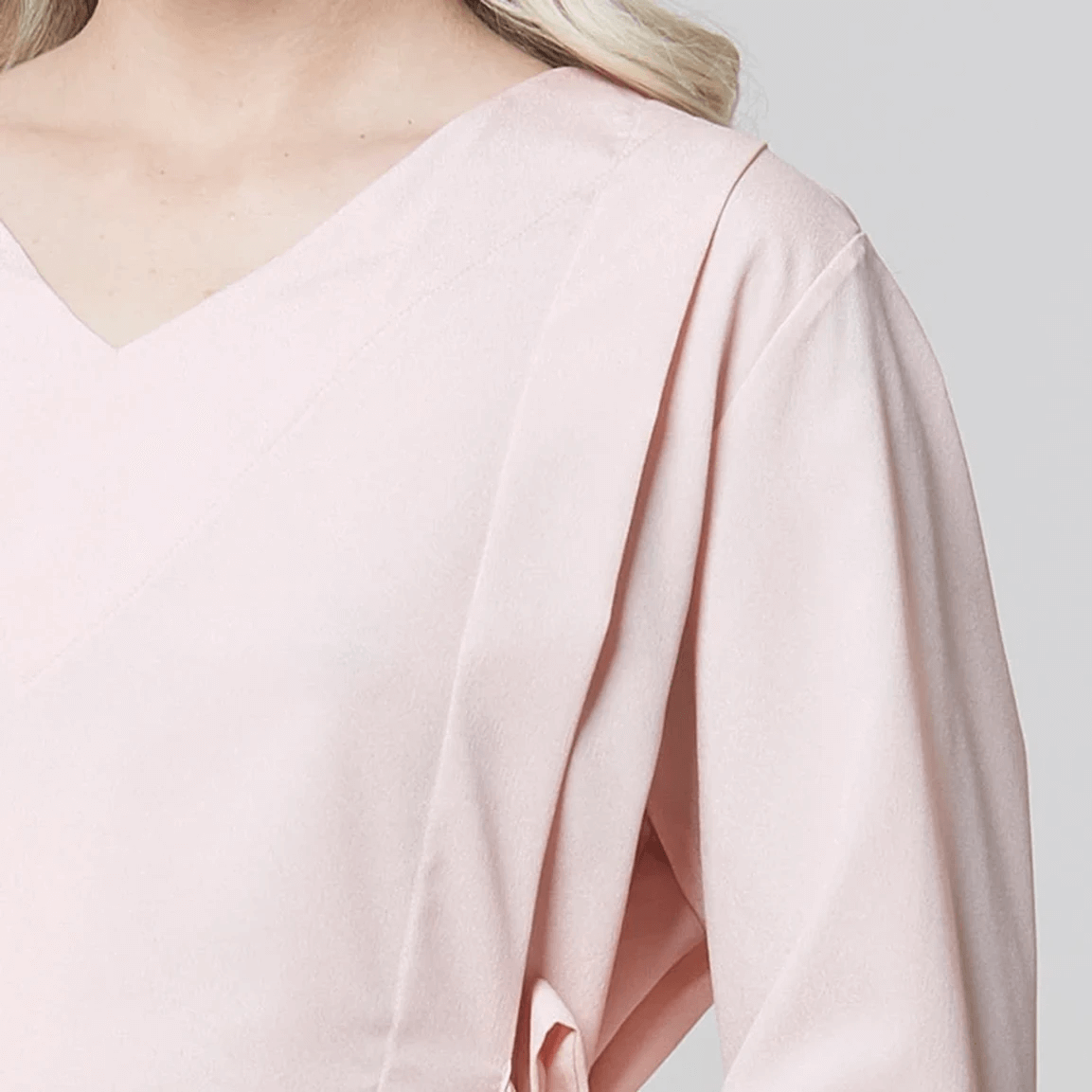 Sua gola V alonga a silhueta e sua abertura proporciona mais conforto e respirabilidade em comparação com decotes mais fechados. Já as mangas 7/8 oferecem um comprimento elegante e prático, ideal para regular a temperatura corporal em diferentes estações do ano.