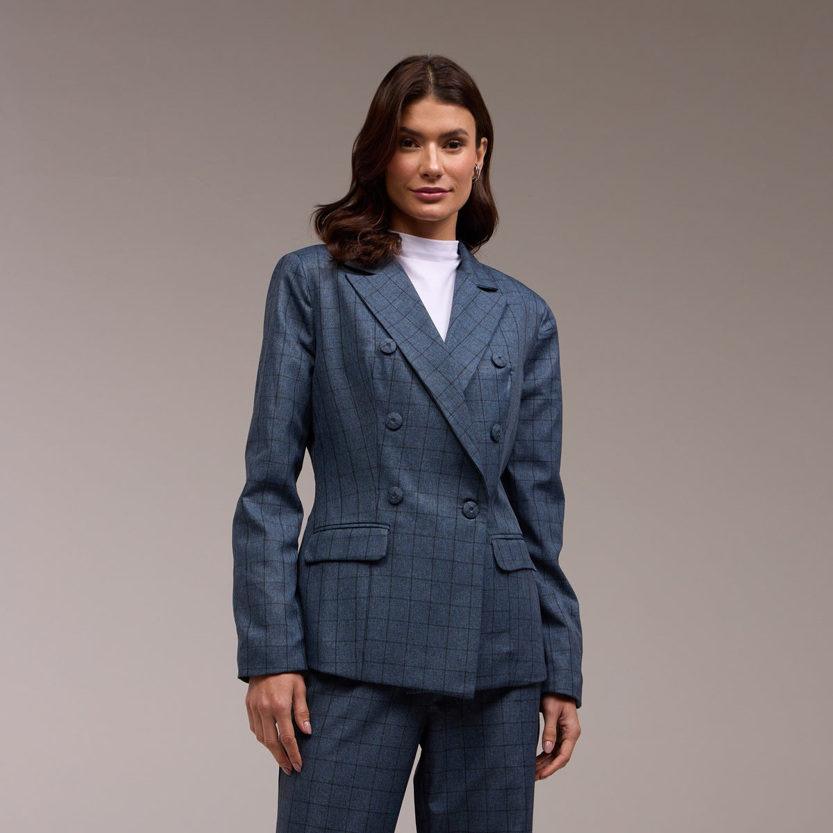 O Blazer Feminino Alongado Albertina é a escolha perfeita para mulheres modernas que procuram um toque de sofisticação em seus looks. Com sua padronagem xadrez clássica e botões encapados, este blazer é uma opção atemporal que pode ser facilmente combinada com outras peças de roupa.