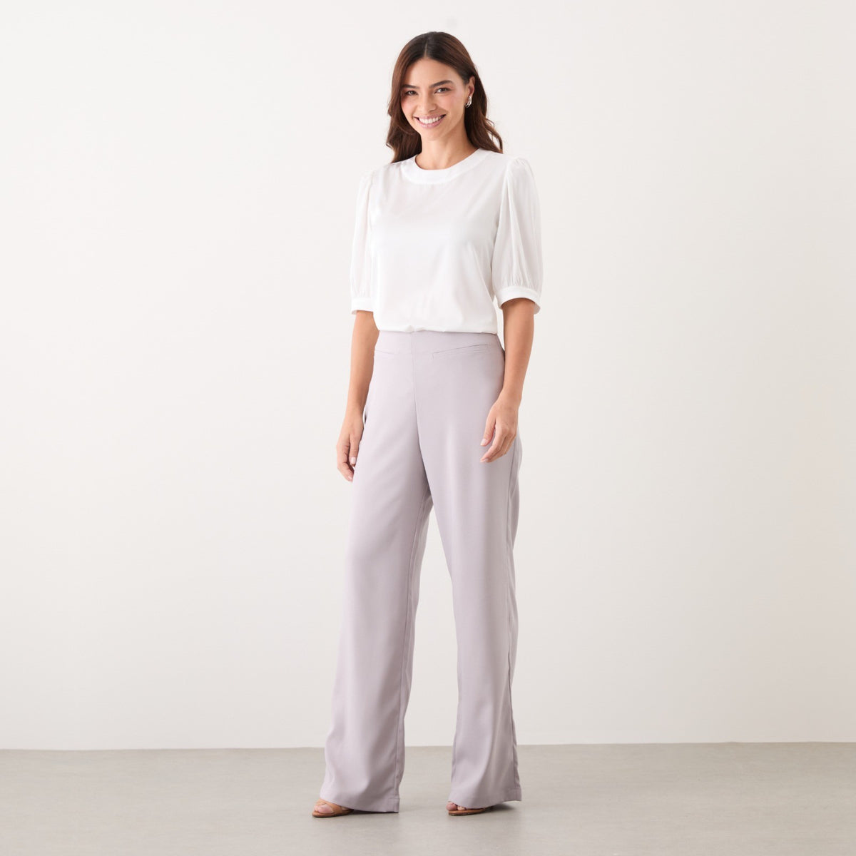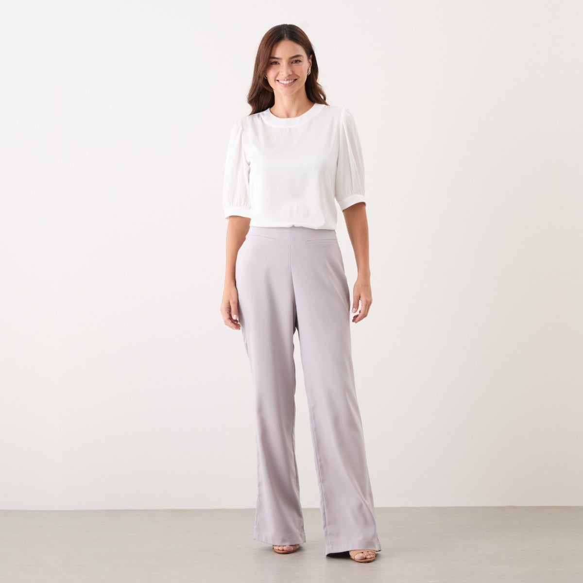 Tecido fluido - O tecido acetinado garante um caimento moderno e sofisticado, além de garantir conforto pela presença de elastano na composição.