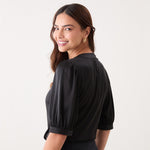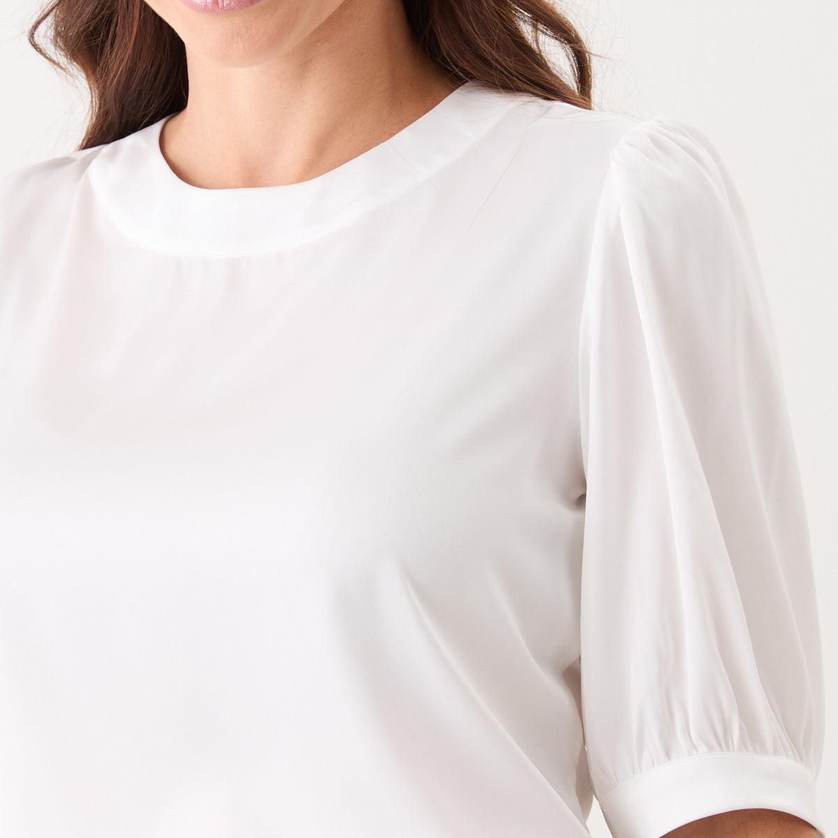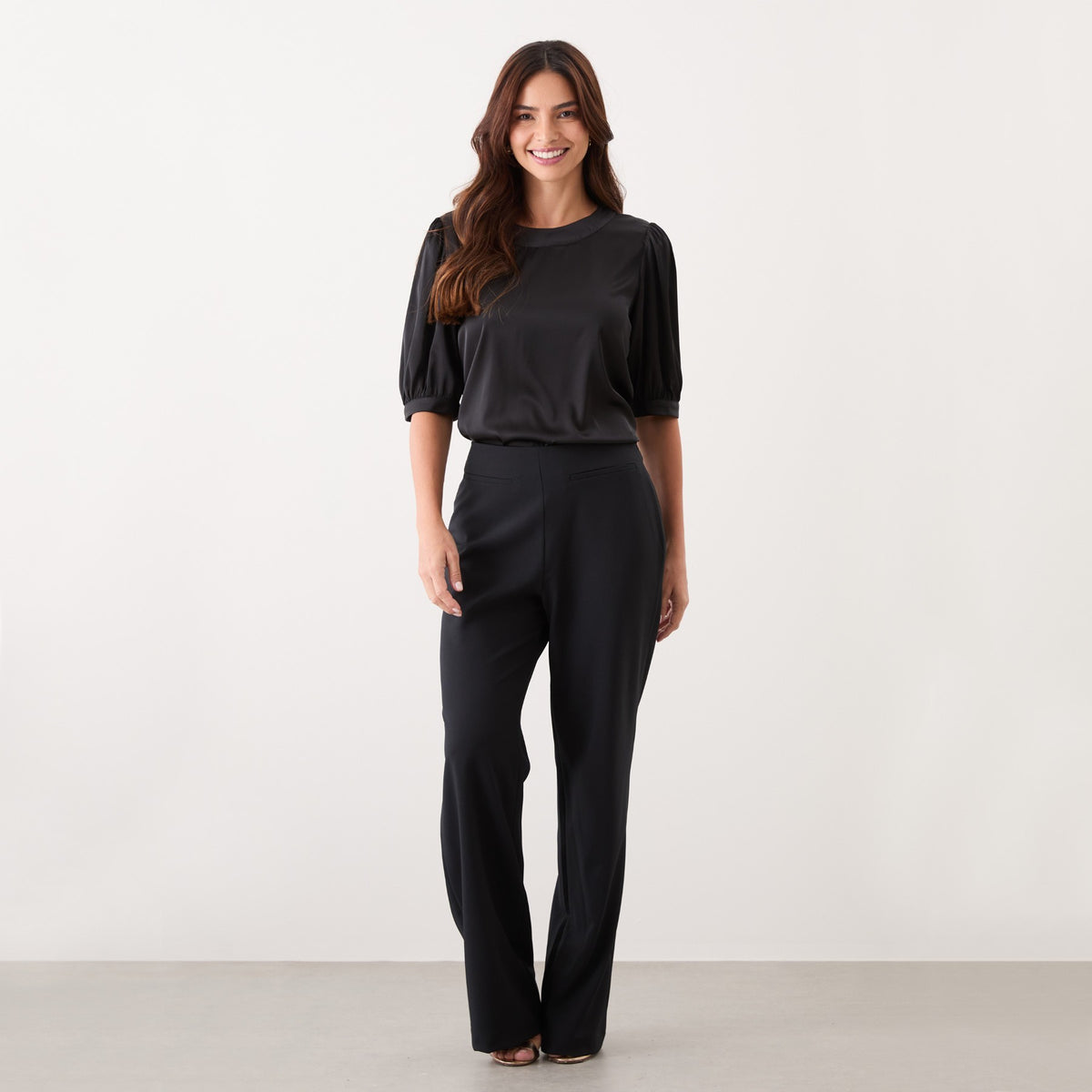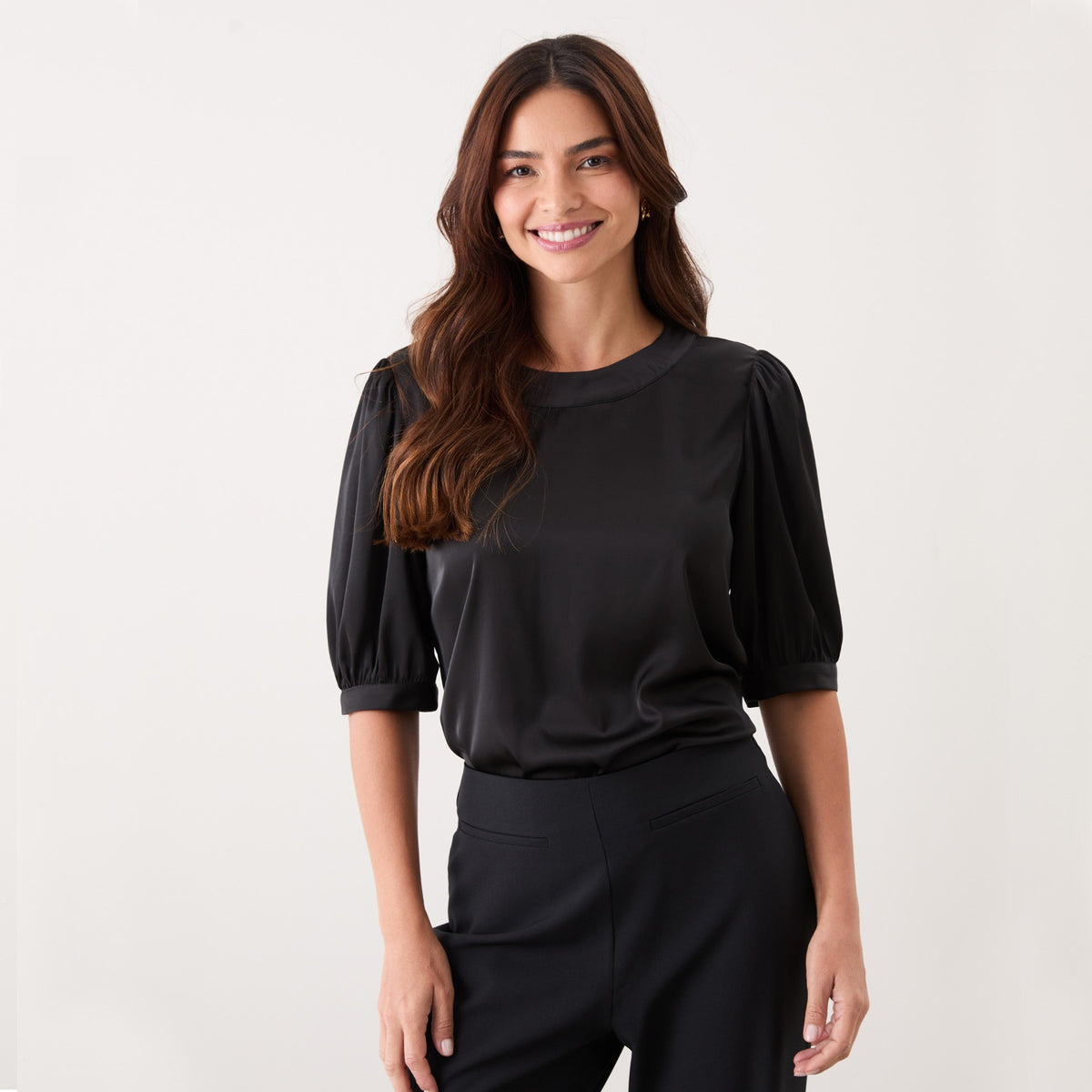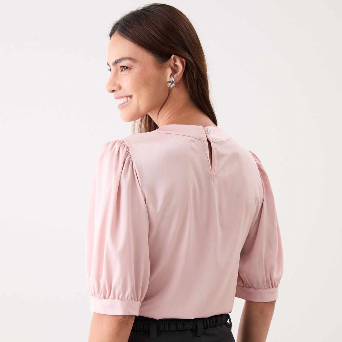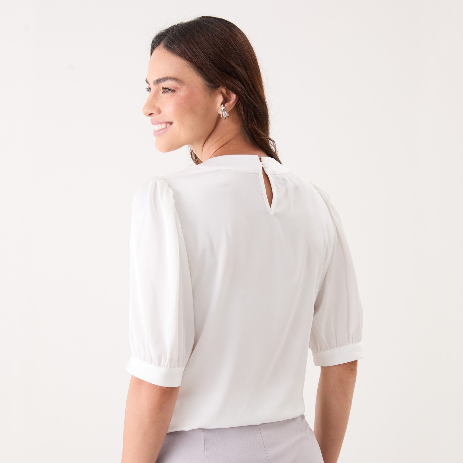 A Blusa Feminina Manga Bufante Liora une elegância e conforto em uma única peça. Seu modelo conta com uma gola redonda, manga curta bufante com punho em tecido acetinado, o que deixa o modelo super moderno, mas sem perder a sofisticação de uma peça de alfaiataria.